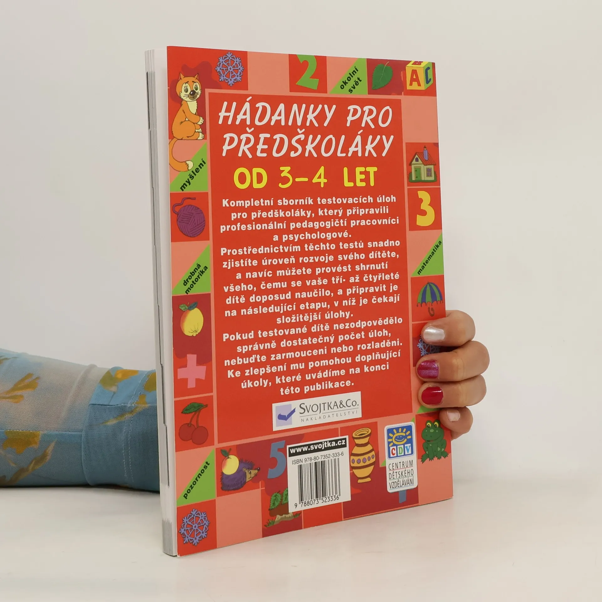 Nejkompletnější sborník testovacích úloh pro předškoláky, který připravili profesionální pedagogičtí pracovníci a psychologové. Prostřednictvím těchto testů snadno zjistíte úroveň rozvoje svého dítěte, a navíc můžete provést shrnutí všeho, čemu se vaše tří- až čtyřleté dítě doposud naučilo, a připravit je na následující etapu, v níž je čekají složitější úlohy. Pokud testované dítě nezodpovědělo správně dostatečný počet úloh, nebuďte zarmouceni nebo rozladěni. Ke zlepšení dítěti pomohou doplňující úkoly, které uvádíme na konci této knihy.