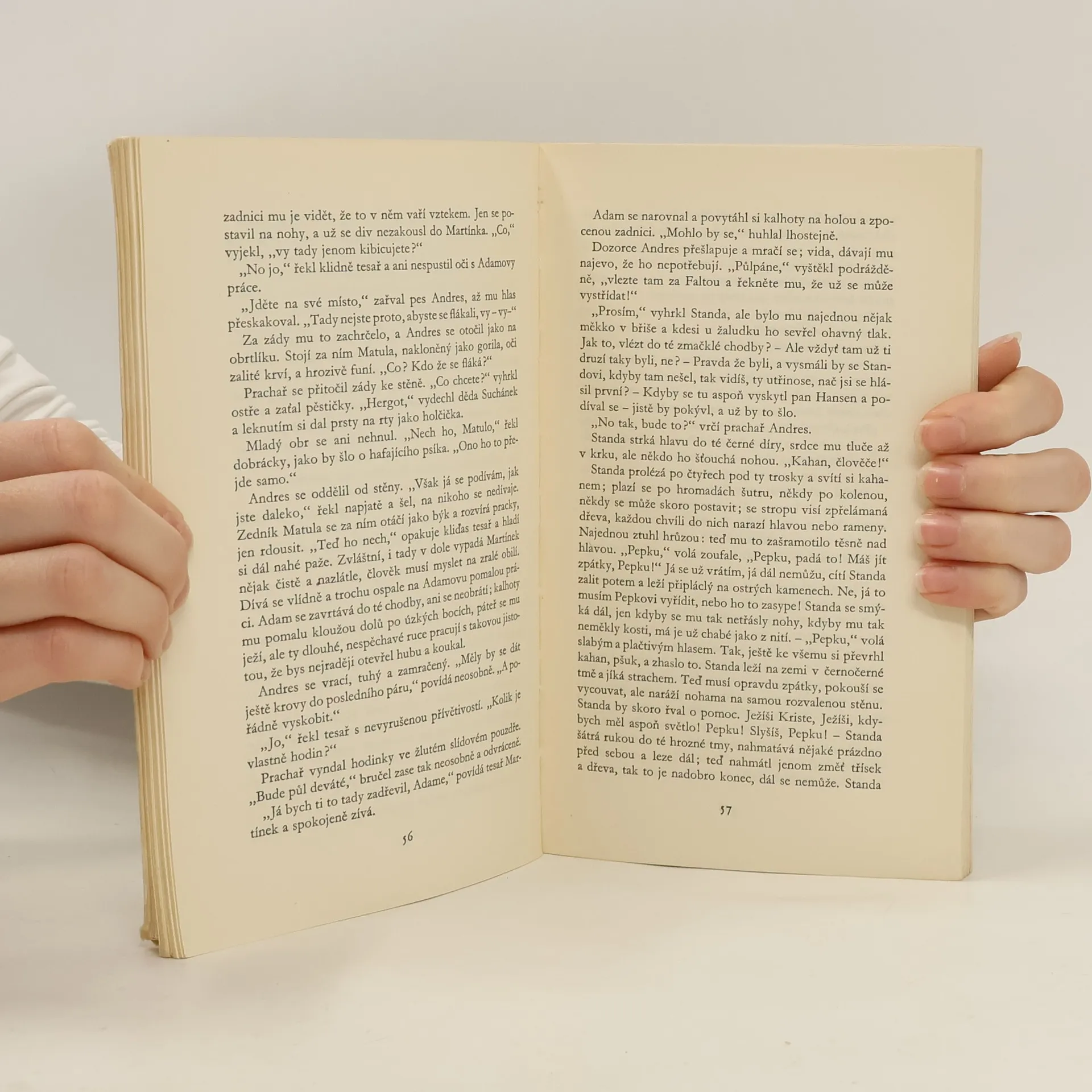 Povídka o osmi mužích, kteří se dobrovolně přihlásili do prvního záchranného mužstva, aby pomohli svým kamarádům havířům, zasypaným v dole. Je to první autorova práce z dělnického prostředí, vyjadřující hluboce lidský poměr k pracujícímu člověku; přesto je v ní zřejmé zastírání třídních rozporů. (Podle J. Fučíka.)
