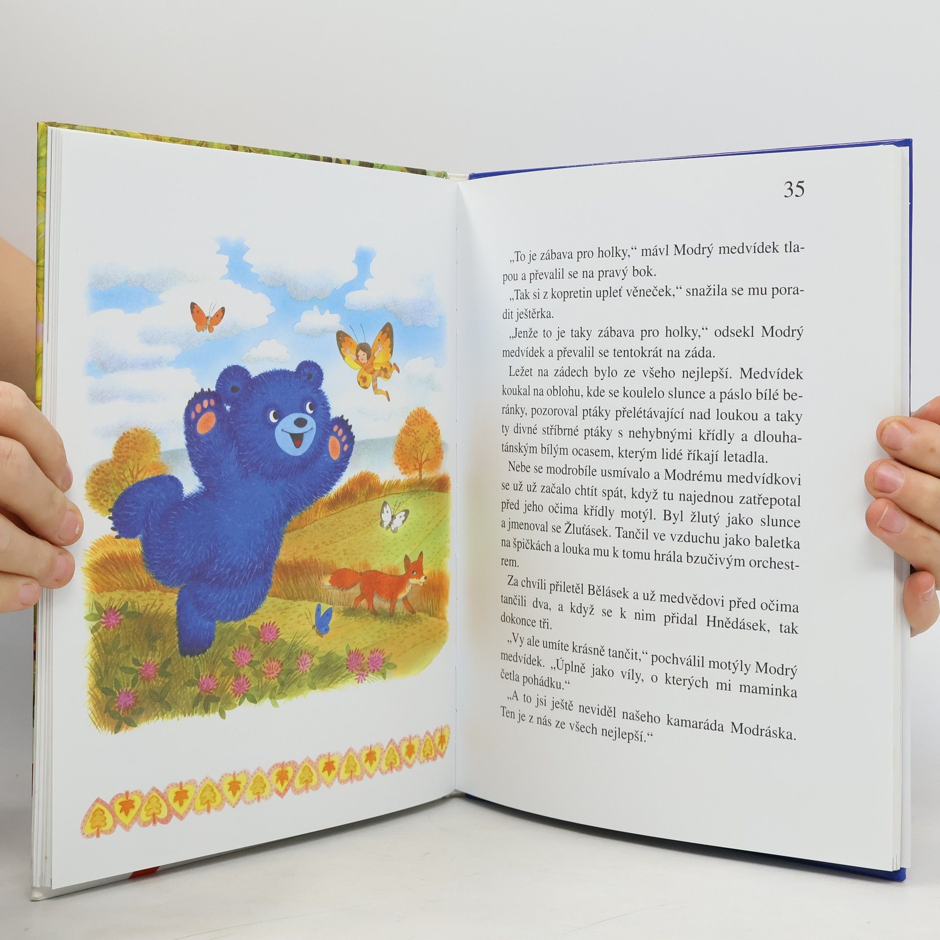 Příběh o malém medvídkovi, který má díky své modré srsti mnoho starostí a musí pochopit, co je v životě důležité. V jednom lese se narodí medvídek, ale není jako ostatní. Jeho srst je modrá a kvůli tomu má spoustu trápení. Některá zvířatka se mu smějí, nechtějí si s ním hrát, protože je jiný. Naštěstí nejsou všichni tak hloupí a Modrý medvídek pochopí, co je skutečné přátelství, a že nezáleží na tom, jak kdo vypadá, ale jaký je uvnitř. Kniha je vhodná pro předškoláky a děti mladšího školního věku.
