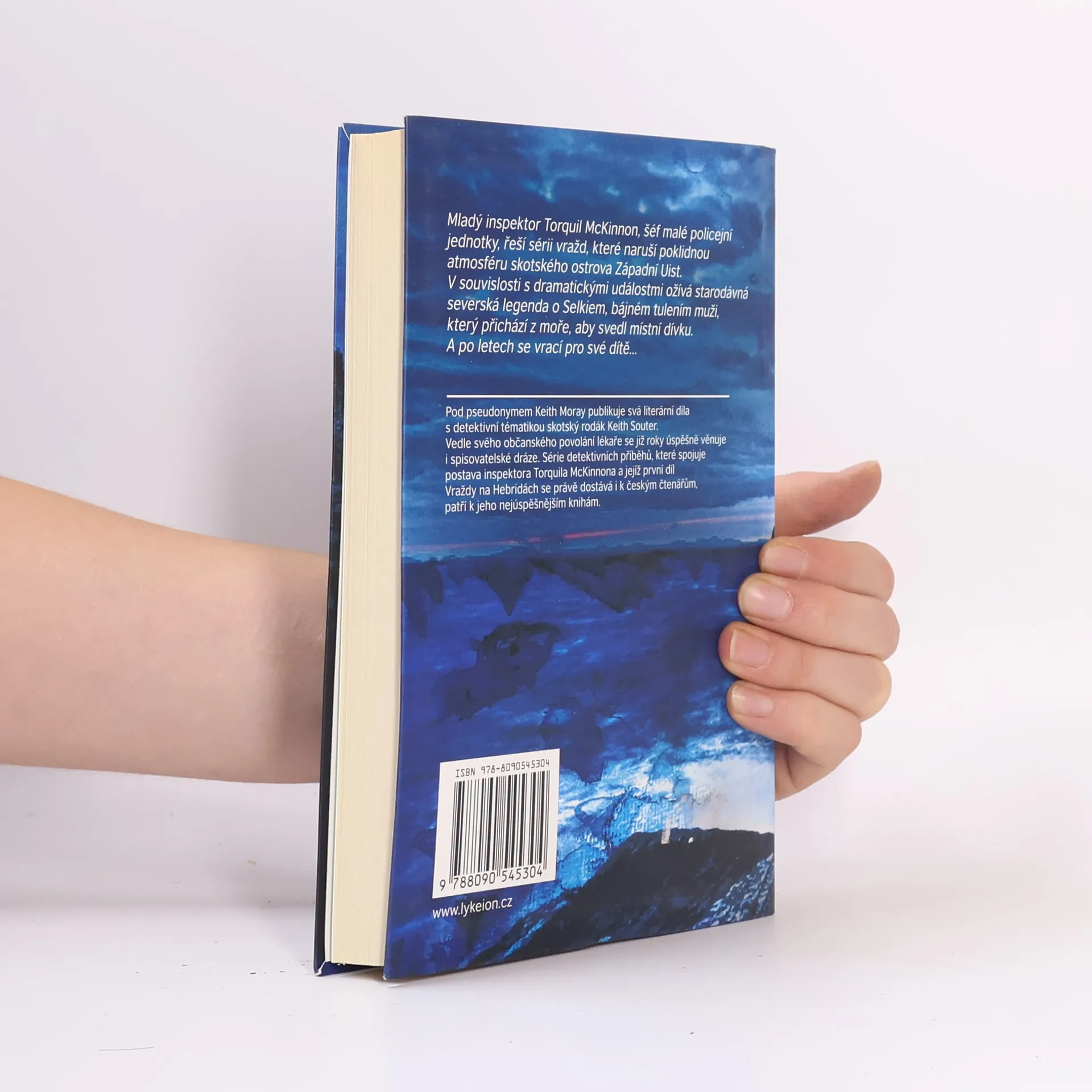 Mladý inspektor Torquil McKinnon, šéf malé policejní jednotky, řeší sérii vražd, které naruší poklidnou atmosféru skotského ostrova Západní Uist. V souvislosti s dramatickými událostmi ožívá starodávná severská legenda o Selkiem, bájném tulením muži, který přichází z moře, aby svedl místní dívku. A po letech se vrací pro své dítě... Autor: Pod pseudonymem Keith Moray publikuje svá literární díla s detektivní tematikou skotský rodák Keith Souter. Vedle svého občanského povolání lékaře se již roky úspěšně věnuje i spisovatelské dráze. Série detektivních příběhů, které spojuje postava inspektora Torquila McKinnona a jejíž první díl Vraždy na Hebridách se právě dostává k českým čtenářům, patří k jeho nejúspěšnějším knihám.