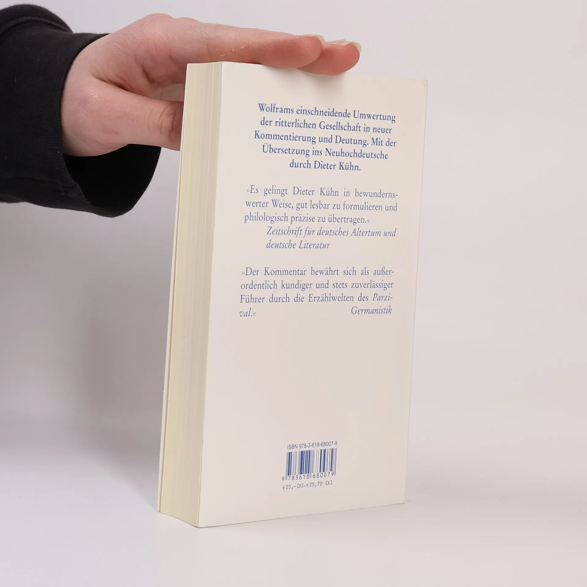 Wolframs Parzival ist einer der wichtigsten epischen Texte des deutschen Hochmittelalters. Gegenüber den romanischen Vorlagen und früheren deutschsprachigen Werken ist die Darstellung der ritterlichen Gesellschaft tiefgreifend verändert. Neu ist auch die Ebene des Erzählers, der souverän und mit überlegenem Humor die Fäden in der Hand hält, kommentierend und wertend eingreift, Beziehungen herstellt, Gegenwart und zeitgenössische Literatur mit einbezieht und das Publikum am Erzählvorgang beteiligt. Auf der Grundlage der Parzival-Edition von Karl Lachmann, aber mit neuen, überzeugenderen Lesarten, bietet diese Ausgabe den besten erreichbaren Text. Der Kommentar führt in die Lebenswirklichkeit des Mittelalters, in Wolframs literarische Tradition, in Vorlagen und Quellen, in das Beziehungsgeflecht innerhalb des Romans, in Wolframs Sprachwelt mit ihren Neuschöpfungen und in die Verschiedenheit der Deutungsansätze. Die vollständige und parallel zum mittelhochdeutschen Original gebotene Übertragung durch Dieter Kühn betont die zeitlose Modernität dieser Dichtung.