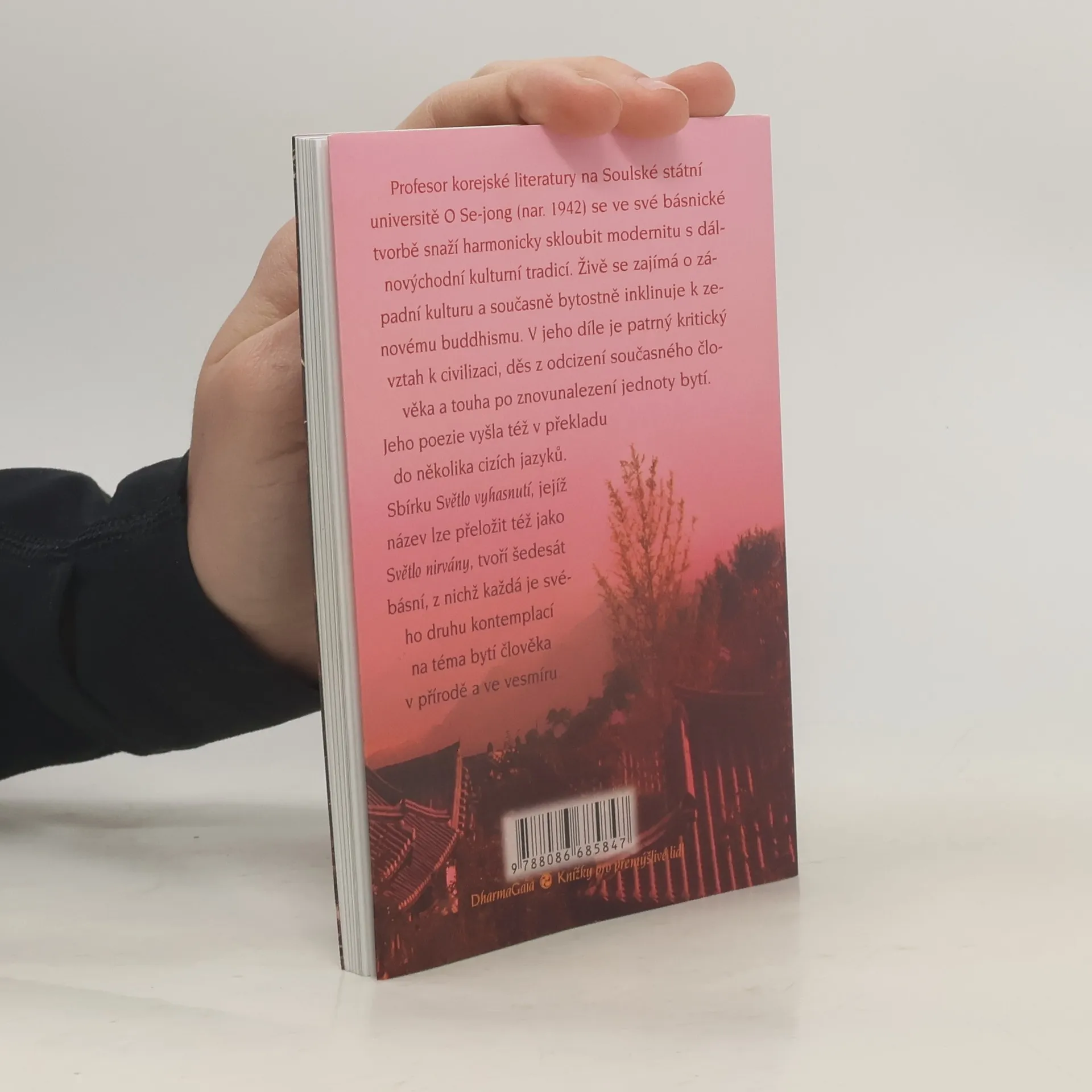 Profesor korejské literatury na Soulské státní univerzitě O Se-jong (nar. 1942) se ve své básnické tvorbě snaží harmonicky skloubit modernitu s dálnovýchodní kulturní tradicí. Živě se zajímá o západní kulturu a současně bytostně inklinuje k zenovému buddhismu. V jeho díle je patrný kritický vztah k civilizaci, děs z odcizení současného člověka a touha po znovunalezení jednoty bytí. Jeho poezie vyšla též v překladu do několika cizích jazyků. Sbírku Světlo vyhasnutí, jejíž název lze přeložit též jako Světlo nirvány, tvoří šedesát básní, z nichž každá je svého druhu kontemplací na téma bytí člověka v přírodě a ve vesmíru. Z korejštiny přeložila a předmluvu a poznámky napsala Ivana Gruberová.