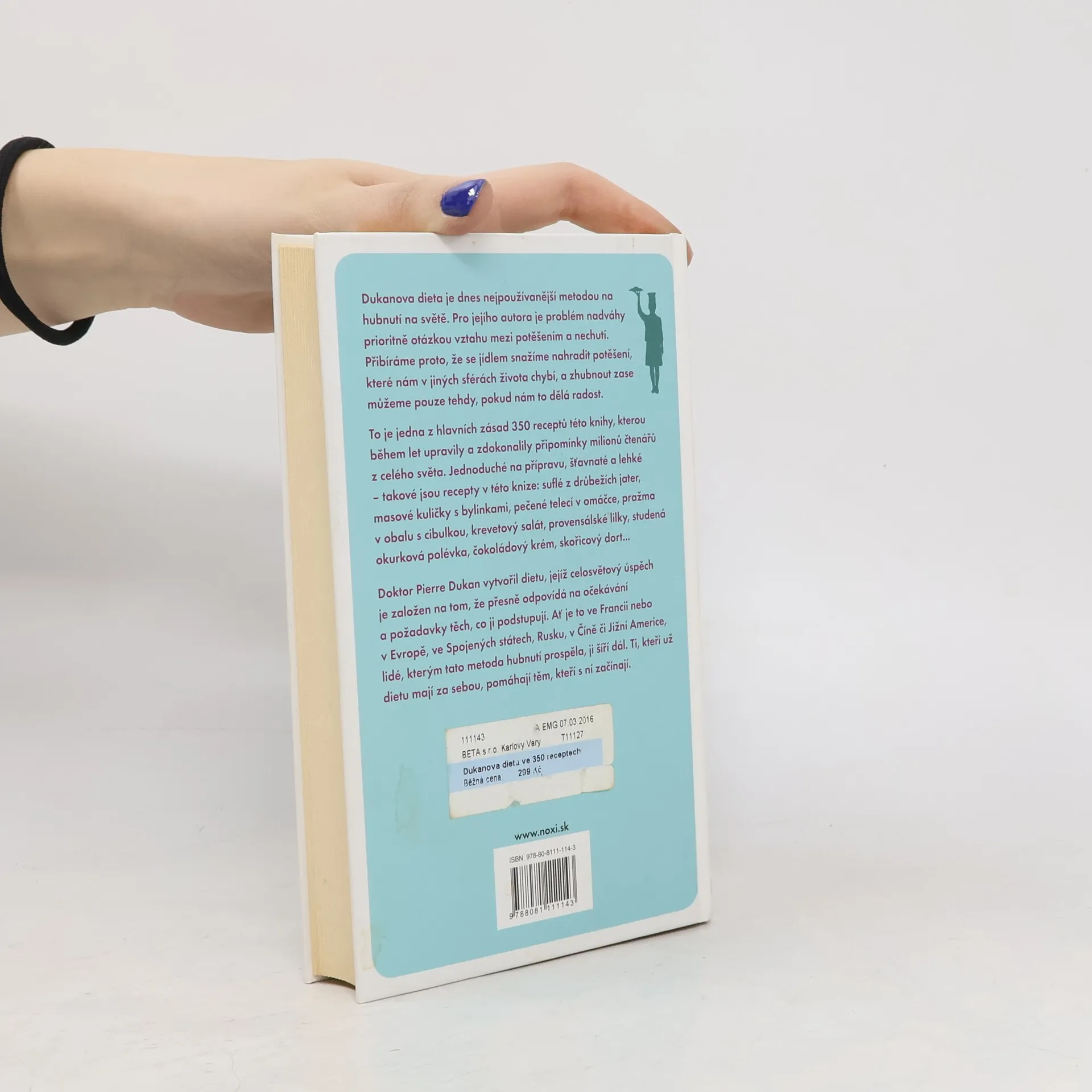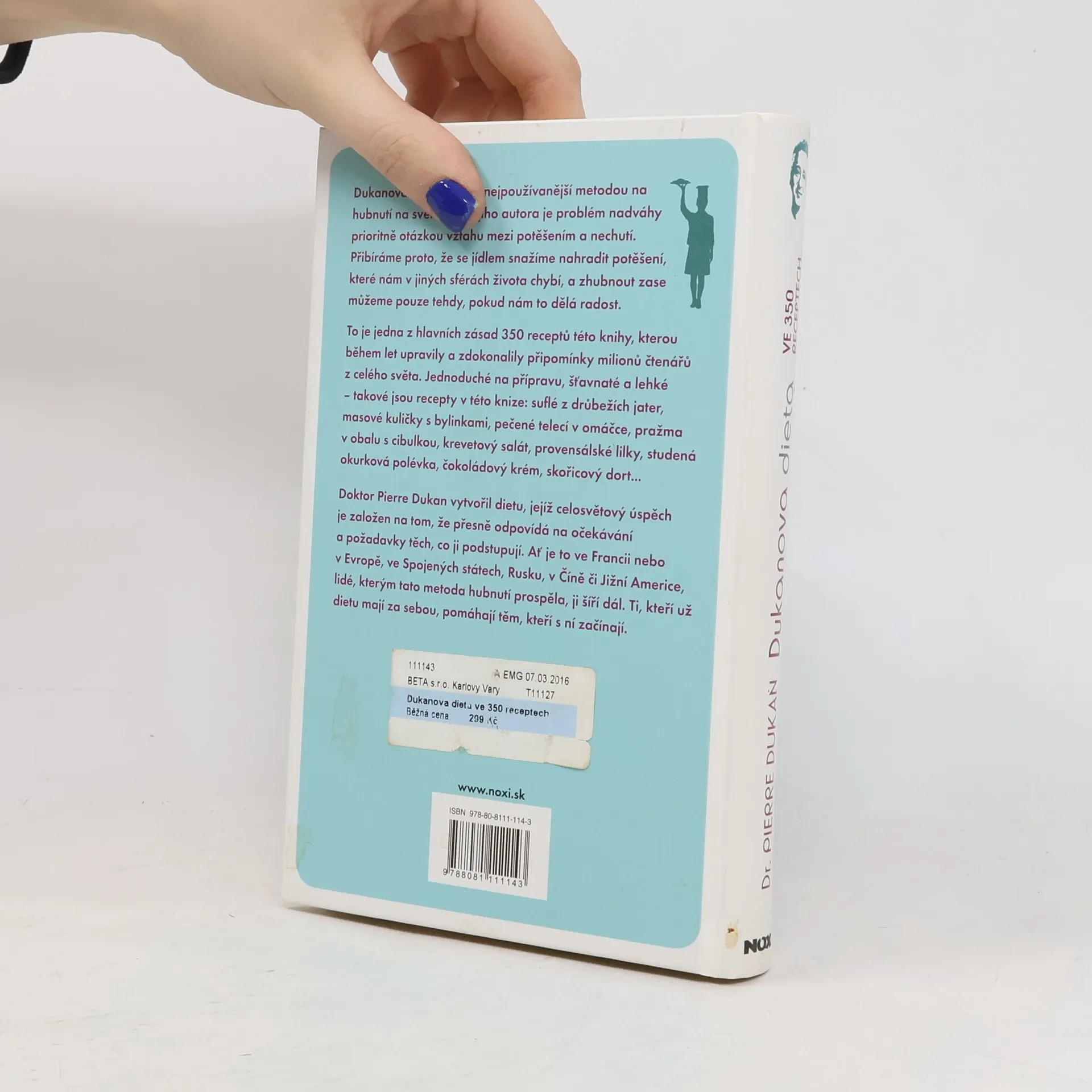 Dukanova dieta je dnes nejpoužívanější metodou na hubnutí na světě. Pro jejího autora je problém nadváhy prioritně otázkou vztahu mezi potěšením a nechutí. Přibíráme proto, že se jídlem snažíme nahradit potěšení, které nám v jiných sférách života chybí, a zhubnout zase můžeme pouze tehdy, pokud nám to dělá radost. To je jedna z hlavních zásad 350 receptů této knihy, kterou během let upravily a zdokonalily připomínky milionů čtenářů z celého světa. Jednoduché na přípravu, šťavnaté a lehké – takové jsou recepty v této knize: suflé z drůbežích jater, masové kuličky s bylinkami, pečené telecí v omáčce, pražma v obalu s cibulkou, krevetový salát, provensálské lilky, studená okurková polévka, čokoládový krém, skořicový dort... Doktor Pierre Dukan vytvořil dietu, jejíž celosvětový úspěch je založen na tom, že přesně odpovídá na očekávání a požadavky těch, co ji podstupují. Ať je to ve Francii nebo v Evropě, ve Spojených státech, Rusku, v Číně či Jižní Americe, lidé, kterým tato metoda hubnutí prospěla, ji šíří dál. Ti, kteří už dietu mají za sebou, pomáhají těm, kteří s ní začínají.