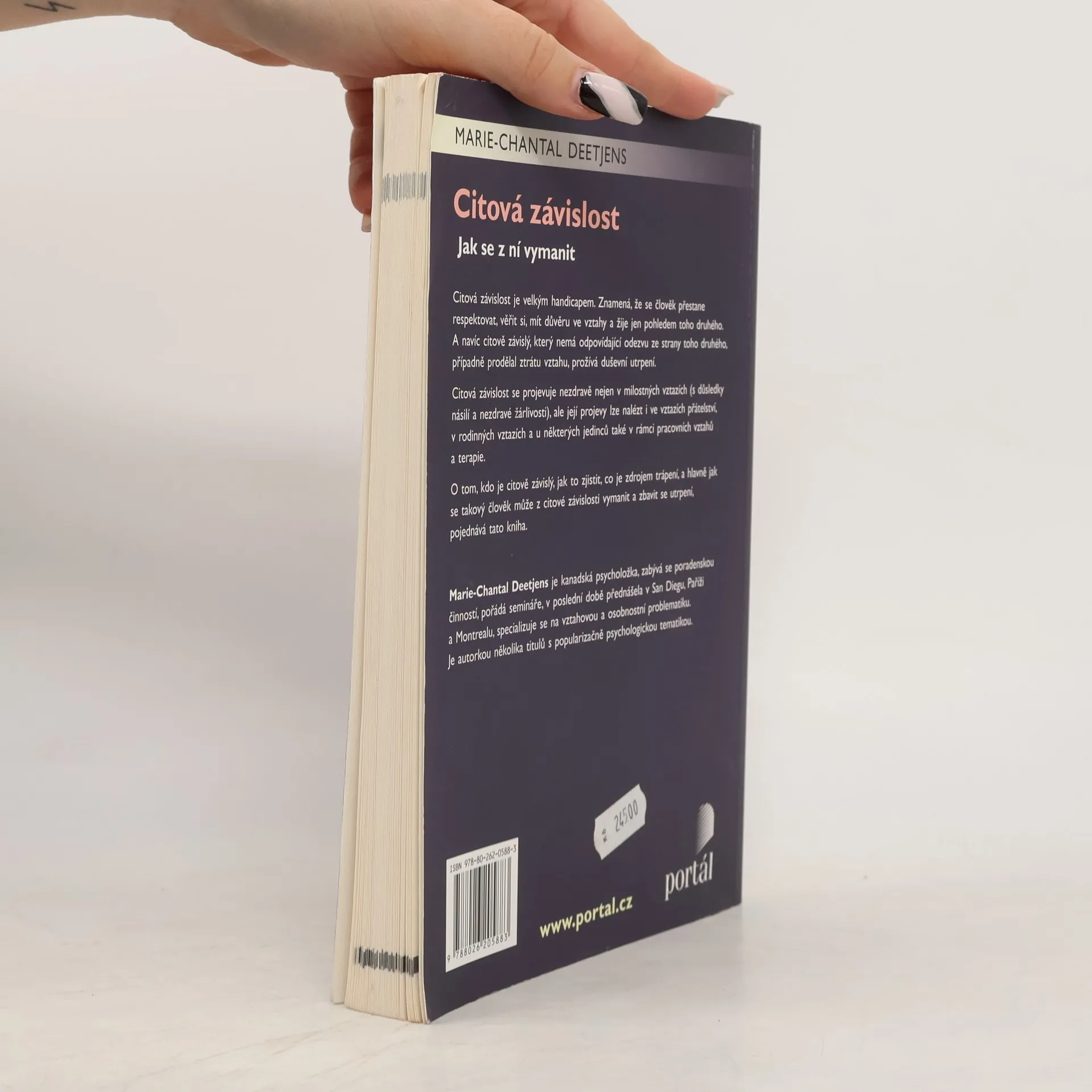 Jak se z ní vymanit. Citová závislost je velkým handicapem. Znamená, že člověk se přestane respektovat, věřit si, mít důvěru ve vztahy a žije jen pohledem toho druhého. A navíc s neodpovídající odezvou ze strany toho druhého, případně se ztrátou vztahu dotyčný citově závislý prožívá duševní utrpení. Tato závislost se projevuje nezdravě v citovém životě nejen v milostných vztazích (s důsledky násilí a nezdravé žárlivosti), ale její projevy lze nalézt někdy v přátelských, rodinných vztazích a u některých jedinců i v rámci pracovních vztahů a terapie. Kdo je citově závislý, jak to zjišťovat, co je zdrojem trápení a hlavně, jak se takový člověk může z citové závislosti vymanit, o tom pojednává tato kniha. Autorka nabízí řadu prostředků, které pomohou dotyčným osobám zbavit se utrpení.