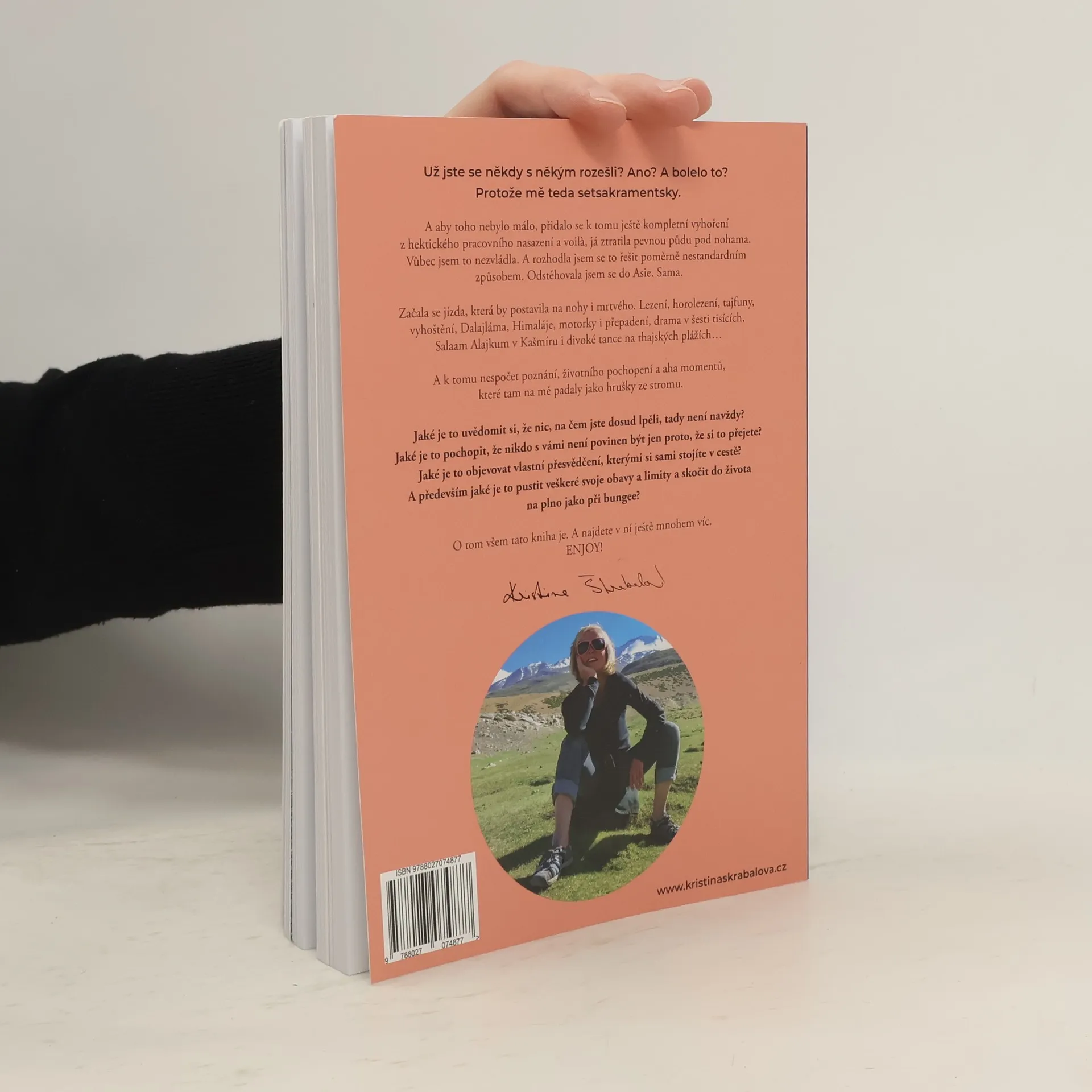 aneb co člověka čeká, když se vydá na druhý konec světa, aby pochopil, že rozchodem život nekončí. Už jste se někdy s někým rozešli? Ano? A bolelo to? Protože mě teda setsakramentsky. A aby toho nebylo málo, přidalo se k tomu ještě kompletní vyhoření z hektického pracovního nasazená a voilá, já ztratila pevnou půdu pod nohama. Vůbec jsem to nezvládla. A rozhodla jsem se to řešit poměrně nestandardním způsobem. Odstěhovala jsem se do Asie. Sama. Začala se jízda, který by postavila na nohy i mrtvého. Lezení, horolezení, tajfuny, vyhoštění, Dalajláma, Himaláje, motorky i přepadení, drama v sesti tisících, Salaam Alejkum v Kašmíru i divoké tance na thajských plážích... A k tomu nespočet poznání, životního pochopení a aha momentů, které tam na mě padaly jako hrušky ze stromu. Jaké to je uvědomit si, že nic, na čem jste dosud lpěli, tady není navždy? Jak´je to pochopit, že nikdo s vámi není povinen být jen proto, že si to přejete? Jaké je to objevovat vlastní přesvědčení, kterými si sami stojíme v cestě? A především jaké je to pustit veškeré obavy a limity a skočit do života na plno jako při bungee? O tom všem tato kniha je. A najdete v ní ještě mnohem víc, ENJOY!