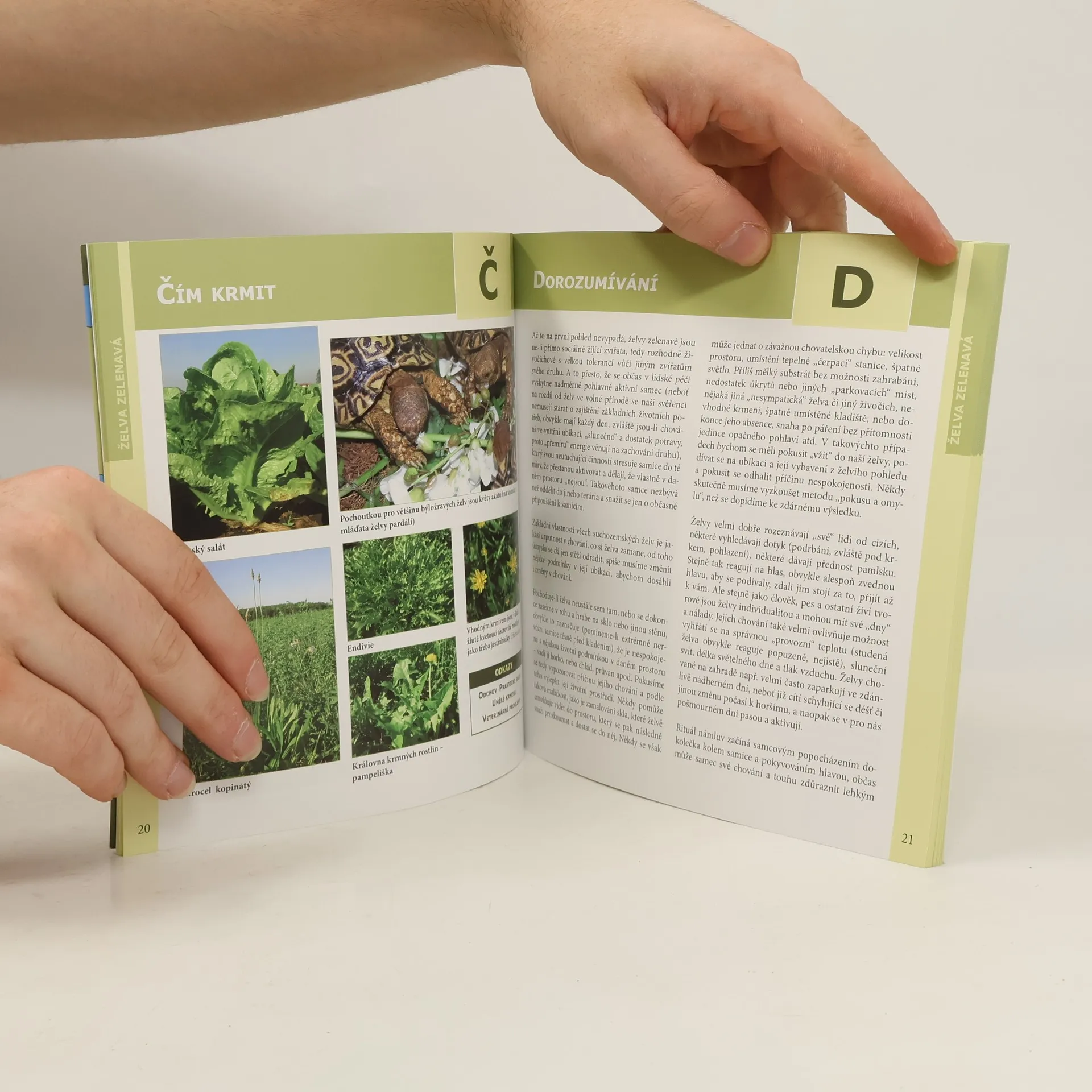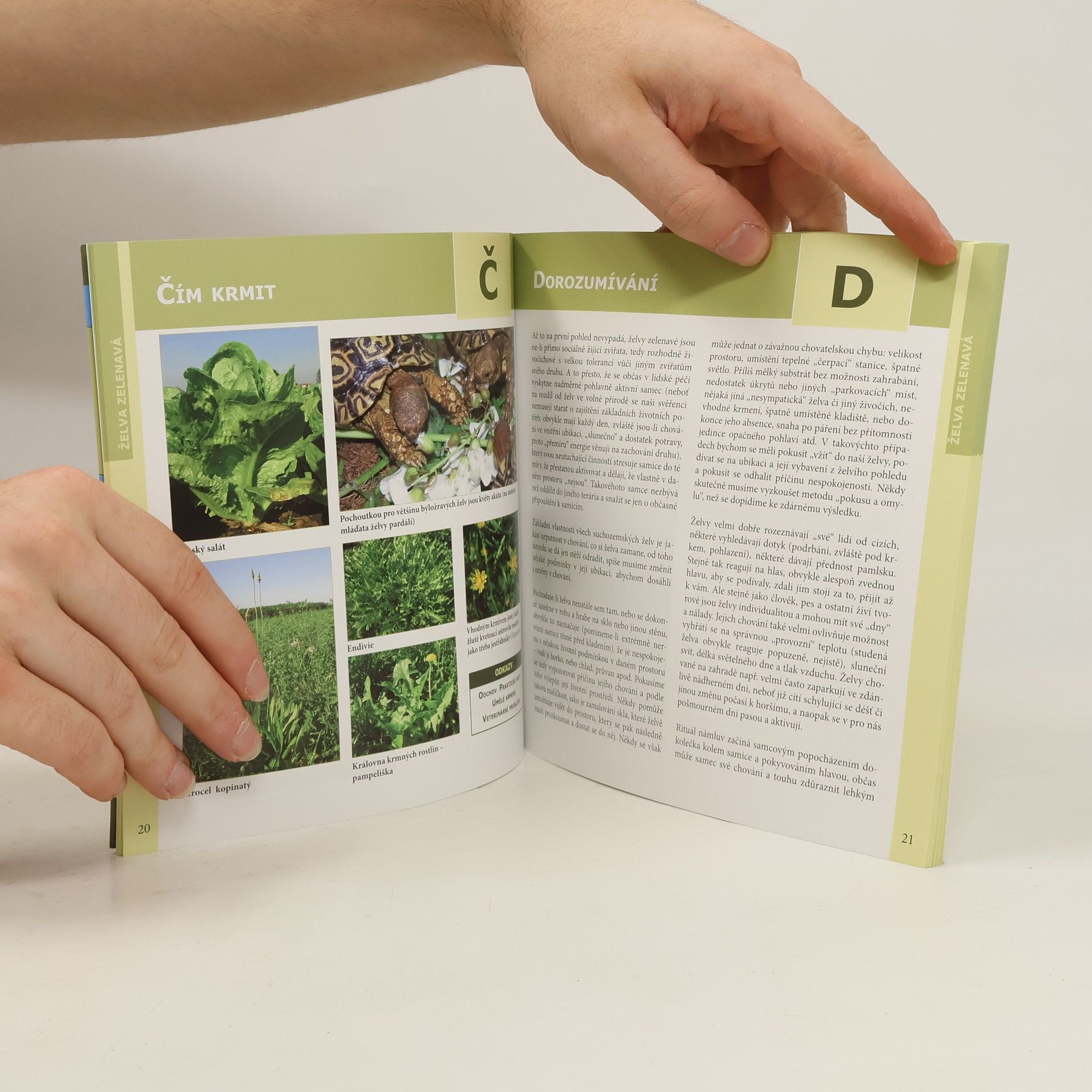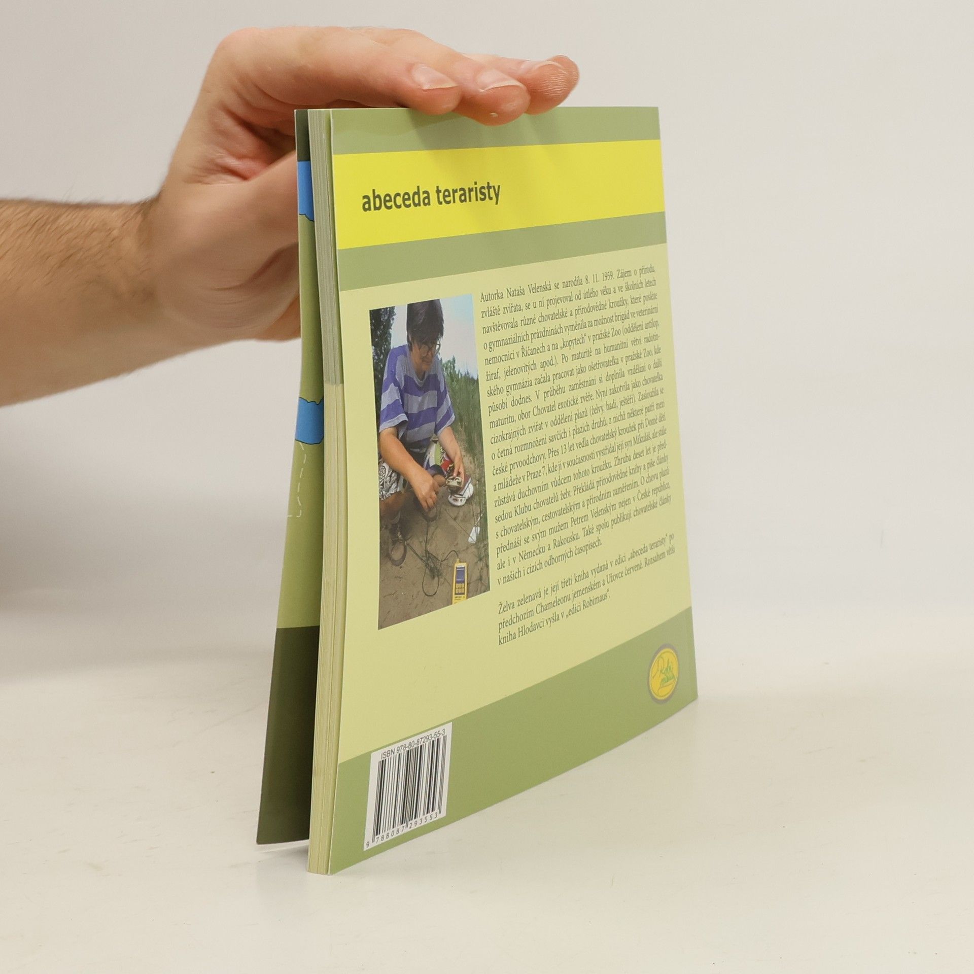 Autorka, paní Nataša Velenská, naše přední odbornice na chov želv, již řadu let působí v pražské ZOO. V knize obsáhle popisuje vše, co se týká chovu a odchovu Testudo hermanni - želvy zelenavé. Pro začínající teraristy je kniha absolutním základem, ale mnoho zajímavých a poučných poznatků zde naleznou i zkušení chovatelé. Nová kniha edice Abeceda teraristy přibližuje nejčastěji chovanou suchozemskou Želvu zelenavou (Testudo hermanni). Autorka Nataša Velenská v knize popisuje základní a potřebné informace pro chov těchto želv, od krmení, bydlení, růstu, až po rozmnožování či veterinární problémy. Kapitoly jsou řazeny podle abecedních hesel, doplněné množstvím fotografií a popisů. V každém výtisku je vložen arch, podle kterého můžete svou želvu jednoduše a přesně měřit a tím sledovat její růst. Údaje si můžete zaznamenat do příslušných kolonek na druhé straně archu.