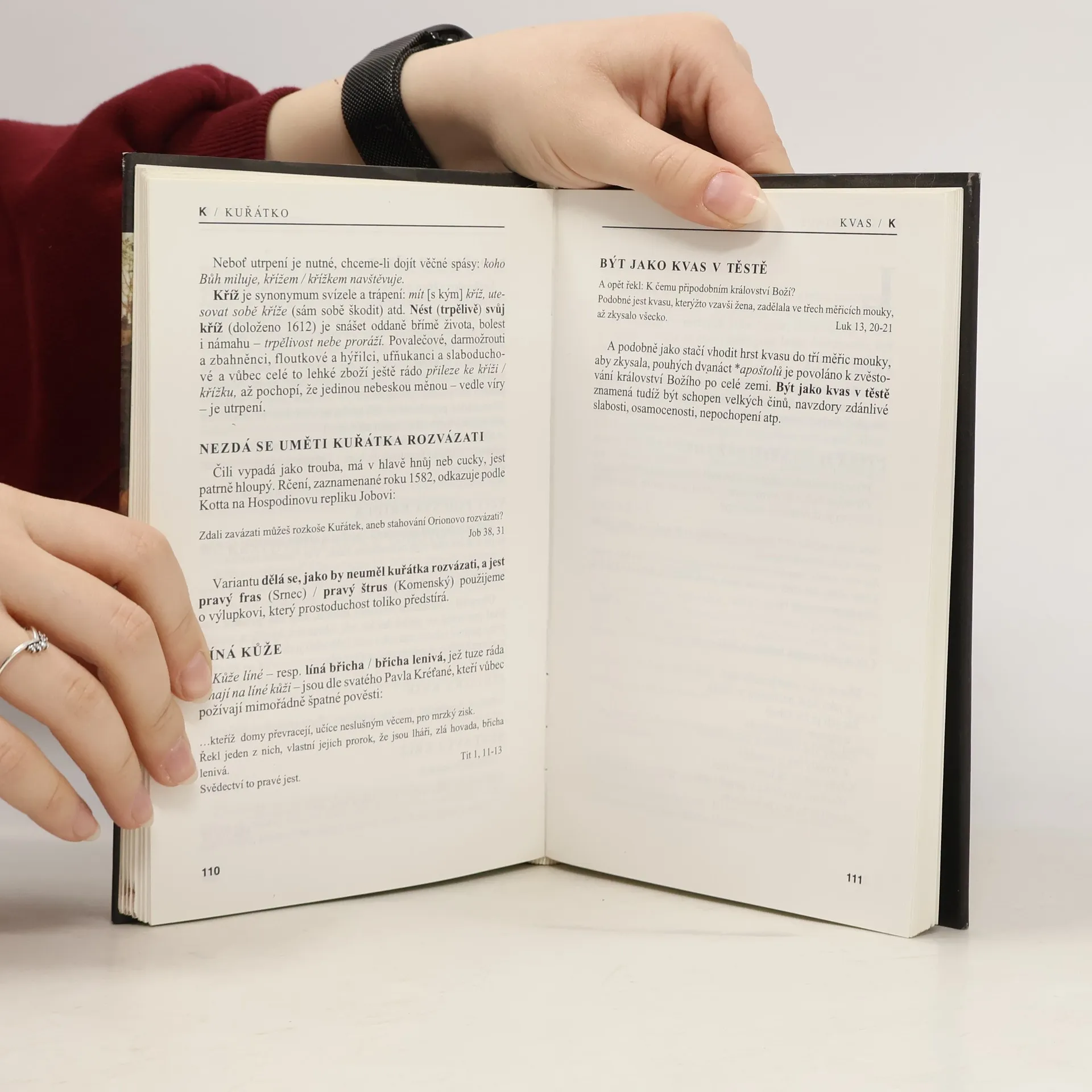 Slovník obsahující přes 1300 výrazů a rčení biblického původu a doplněný citacemi z děl věhlasných i méně věhlasných biblistů – a ne vždy uctivými komentáři autora samého.