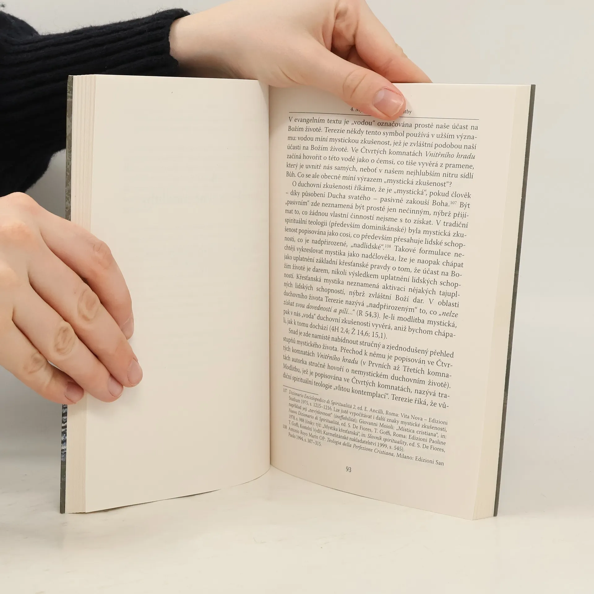 Autor sleduje vývoj karmelitánské mystičky a pokouší se načrtnout její duchovní životopis, přičemž vychází z důkladného studia jejích vlastních spisů. Plasticky tak vyvstávají jednotlivé etapy duchovního zrání, které jsou charakteristické prohlubováním vztahu s Kristem i proměnami jejího života modlitby. U světců nejde především o to, abychom obdivovali jejich výjimečnost. Jak prohlásil jeden z papežů 20. století, každý svatý je Božím slovem pro svou dobu. A můžeme dodat, že někteří svatí, především mystikové a učitelé církve, jsou Božím slovem „nadčasovým“ – promlouvají se stejnou živostí ke stále novým generacím. Jsou nám darováni proto, abychom v jejich životě pozorně vnímali všechno to, co tvoří i náš život: jejich zápasy a obdarování, krize a nová obrácení, zkrátka život z víry, naděje a lásky, který činí z obyčejných lidských daností a kulis „něco krásného pro Boha“. Terezie k nám promlouvá s vřelostí starší sestry ve víře a dokáže čtenáře nadchnout pro cestu objevování Pramene.