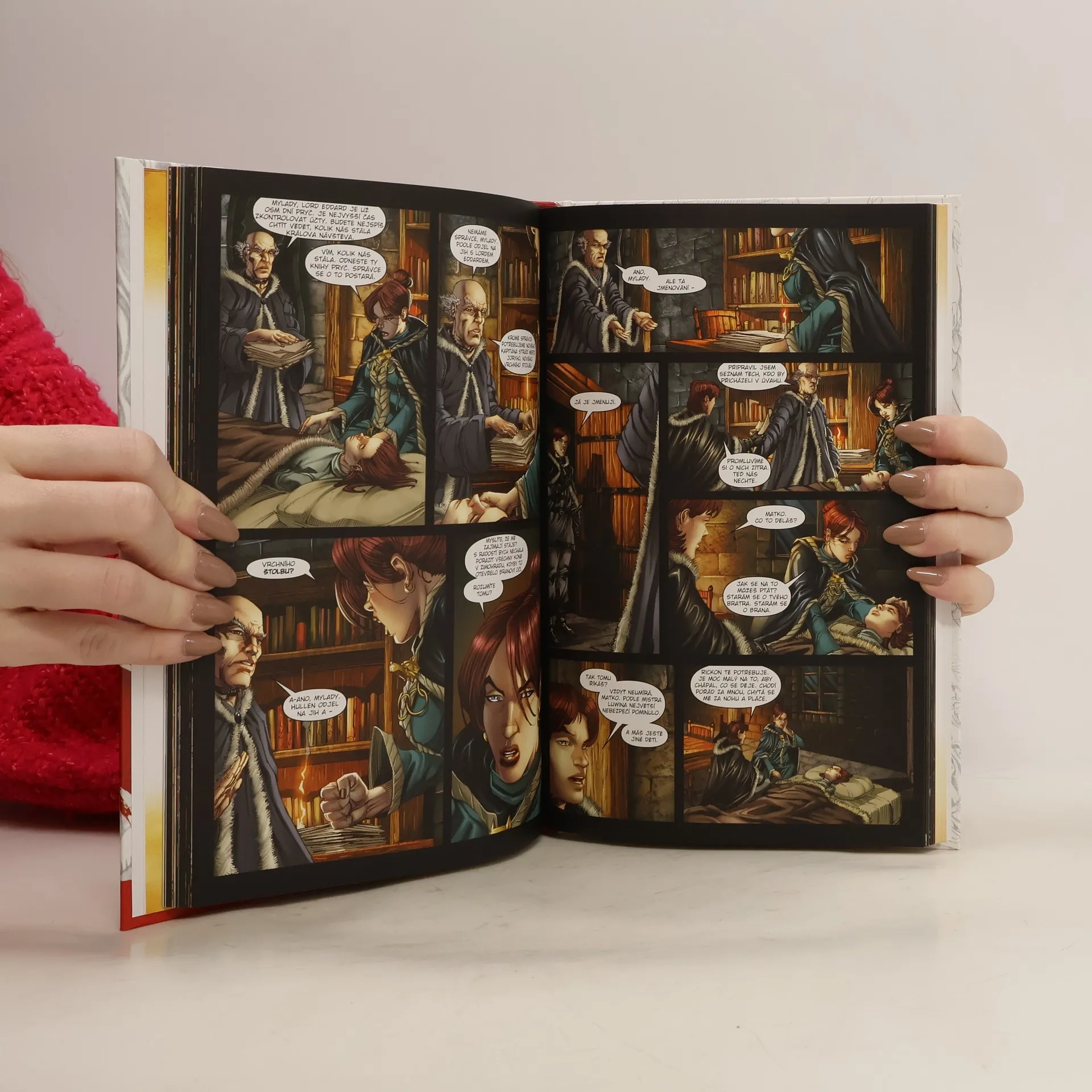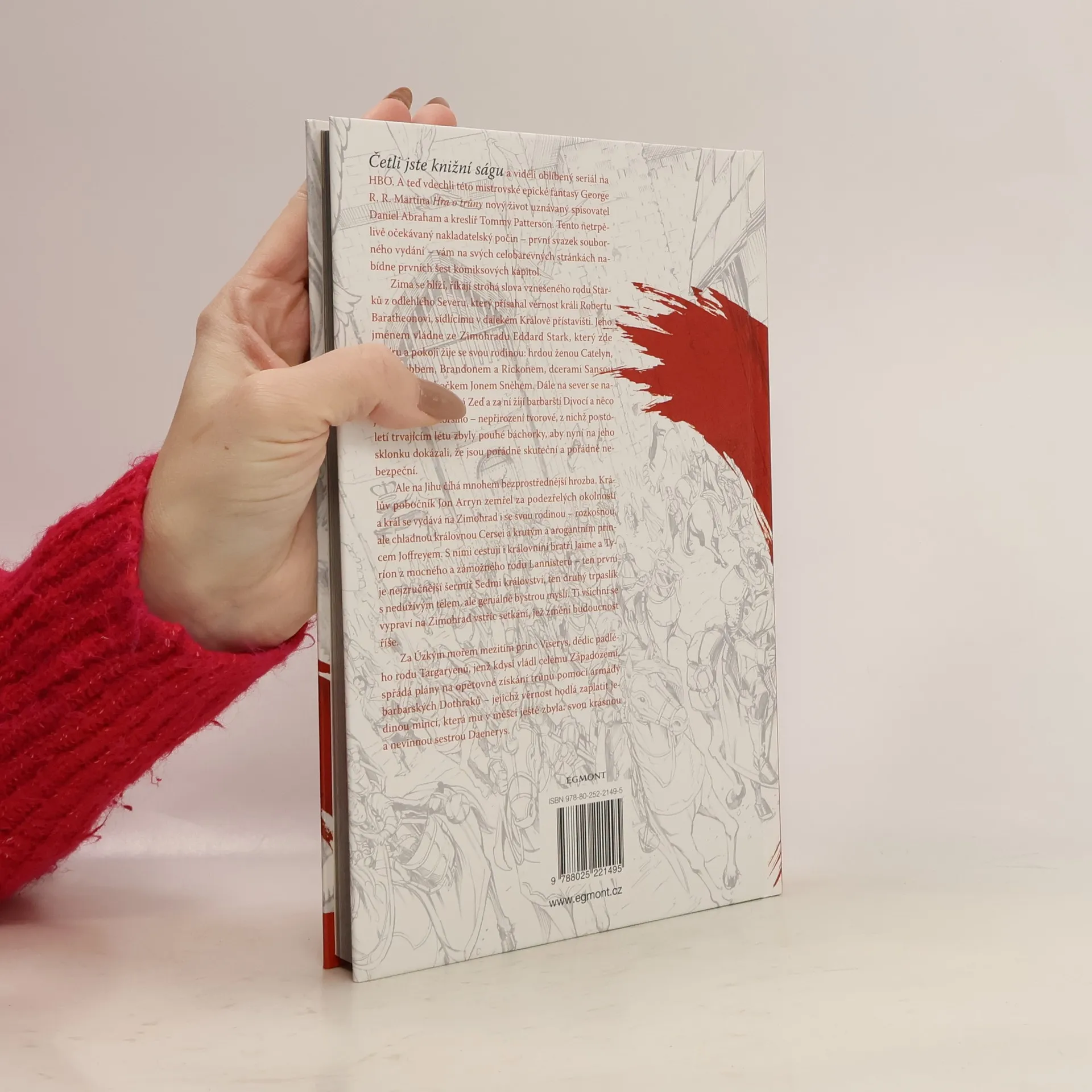 Mistrovská epická fantasy se po televizním seriálu stanice HBO nyní dočkala i komiksové podoby. Zima se blíží. Takové je strohé motto rodu Starků, který spravuje jménem krále Roberta Baratheona, vládce Sedmi království, Severní léno. Jejich sídlem je Zimohrad, kde v míru a pohodlí žije strážce severu Eddard Stark se svou hrdou ženou Catelyn, syny Robbem, Brandonem a Rickonem, dcerami Sansou a Aryou a svým levobočkem Jonem Sněhem. Nad Sedmi královstvími se však stahují mračna. Z východu ohrožují krále Roberta princezna Daenerys a její bratr Viserys ze starobylého královského rodu Targaryenů. Na severní hranici, za starobylou Zdí, se zase probouzejí strašlivé nadpřirozené bytosti, které lidé během staletí dlouhého léta odkázali do říše mýtů.