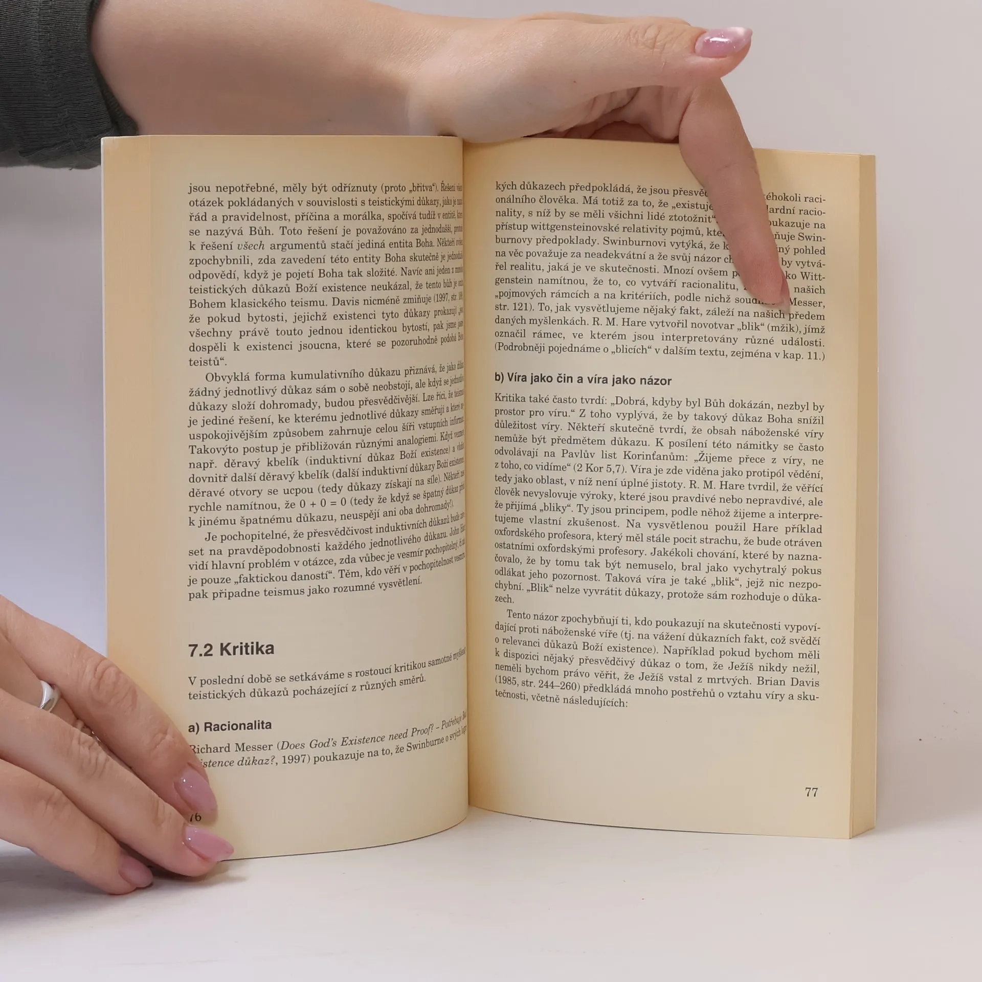 Stručný a srozumitelný pohled na všechny základní otázky filozofie náboženství, včetně důkazů Boží existence (ontologický, kosmologický, teleologický a morální důkaz, důkaz z náboženské zkušenosti) a jejich hodnotu. Probíraná témata zahrnují problém zla, vztah mezi tělem a duší, posmrtný život a jiné. Text je velice přehledný, doplněný obrázky a schématy. Publikace zastupuje u nás méně obvyklý pohled anglosaské filozofie.