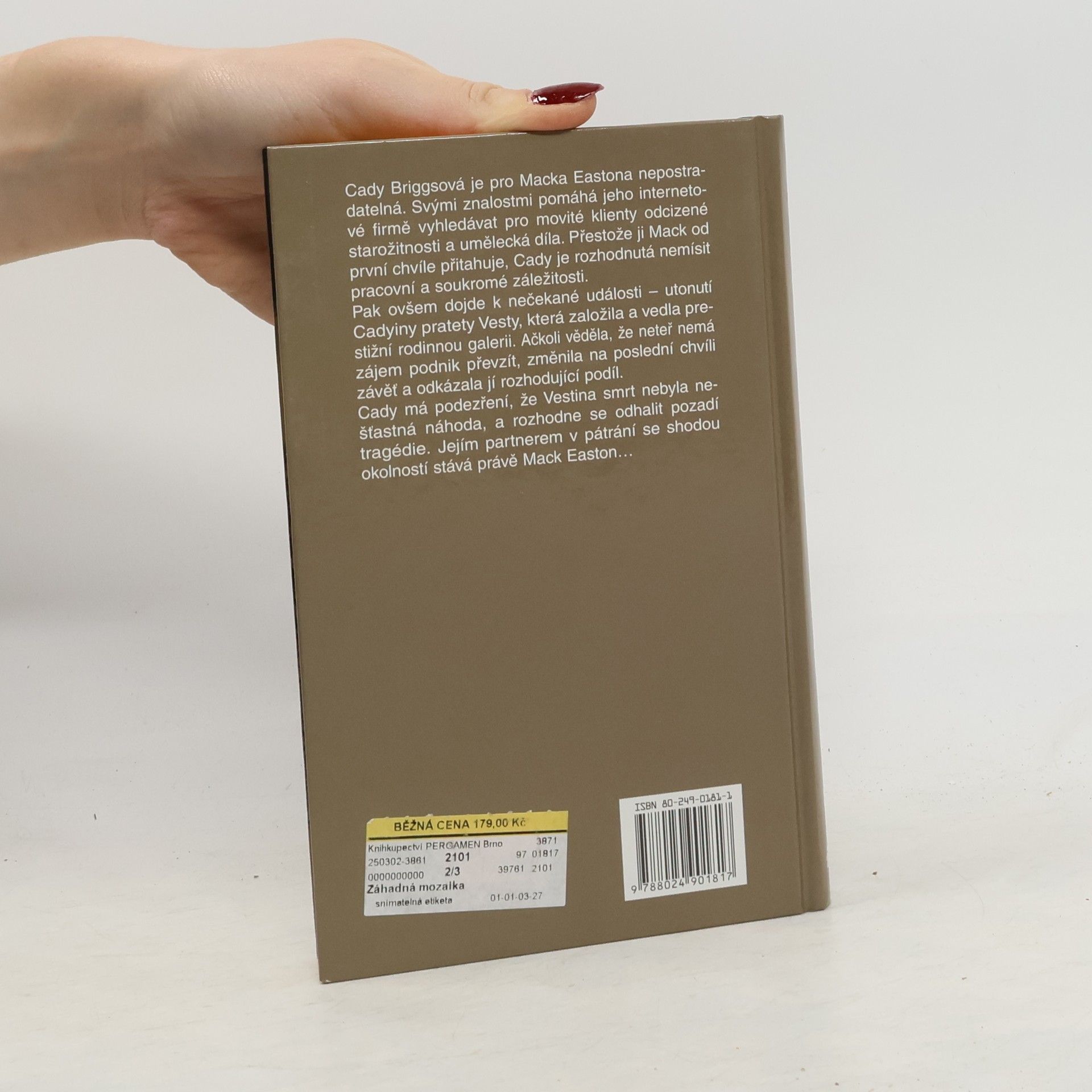 Cady Briggsová řeší spolu s Mackem Eastonem, majitelem internetové firmy pátrající po zmizelých starožitnostech a uměleckých dílech, záhadnou smrt Cadyiny pratety Vesty. Mladá rozvedená hrdinka je odbornicí na užité umění a spolupracuje s mužem, který vyhledává pro bohaté klienty ukradené starožitnosti. Z najímané síly se sama stane zaměstnavatelkou, když svého dosavadního šéfa pověří pátráním po skutečné příčině smrti své podivínské tety, která jí zanechala základní podíl v rodinné umělecké galerii. Změna závěti na poslední chvíli je hrdince podezřelá a rozhodne se odhalit pravdu i za tu cenu, že bude muset obvinit někoho z rodiny. Atraktivní a brzy i velice zamilovaný kolega nejenže případ vyřeší, ale mladé ženě zachrání i život...