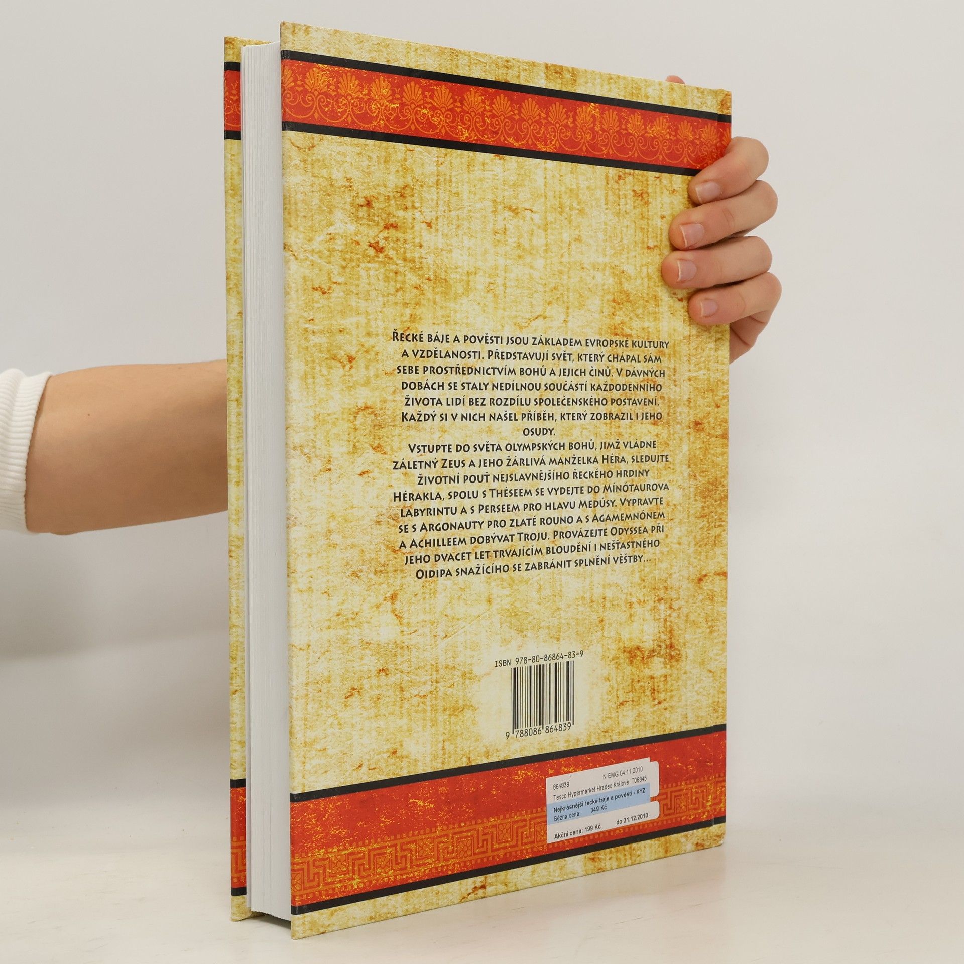 Řecké báje a pověsti jsou základem evropské kultury a vzdělanosti. Představují svět, který chápal sám sebe prostřednictvím bohů a jejich činů.V dávných dobách se staly nedílnou součástí každodenního života lidí bez rozdílu jejich společenského postavení. Každý si v nich našel příběh, který zobrazil i jeho osudy. Vstupte do světa olympských bohů, jimž vládne záletný Zeus a jeho žárlivá manželka Héra, sledujte životní pouť nejslavnějšího řecké hrdiny Hérakla, spolu s Théseem se vydejte do Mínotaurova labyrintu a s Perseem pro hlavu Medúsy. Vypravte se s Argonauty pro zlaté rouno a s Agamemnónem a Achilleem dobývat Tróju. Provázejte Odyssea při jeho dvacet let trvajícím bloudění i nešťastného Oidipa snažícího se zabránit splnění věštby… Neexistuje jediný a jednotný výklad řeckých bájí. Podobně jako autoři řečtí, i ti dnešní vyzdvihují tu nebo onu stránku těchto myšlenkově bohatých příběhů a vnášejí do nich svou invenci. Ať už v té či oné verzi by však řecké báje jako jeden ze základních pilířů evropské civilizace měly být současnému čtenáři známé.