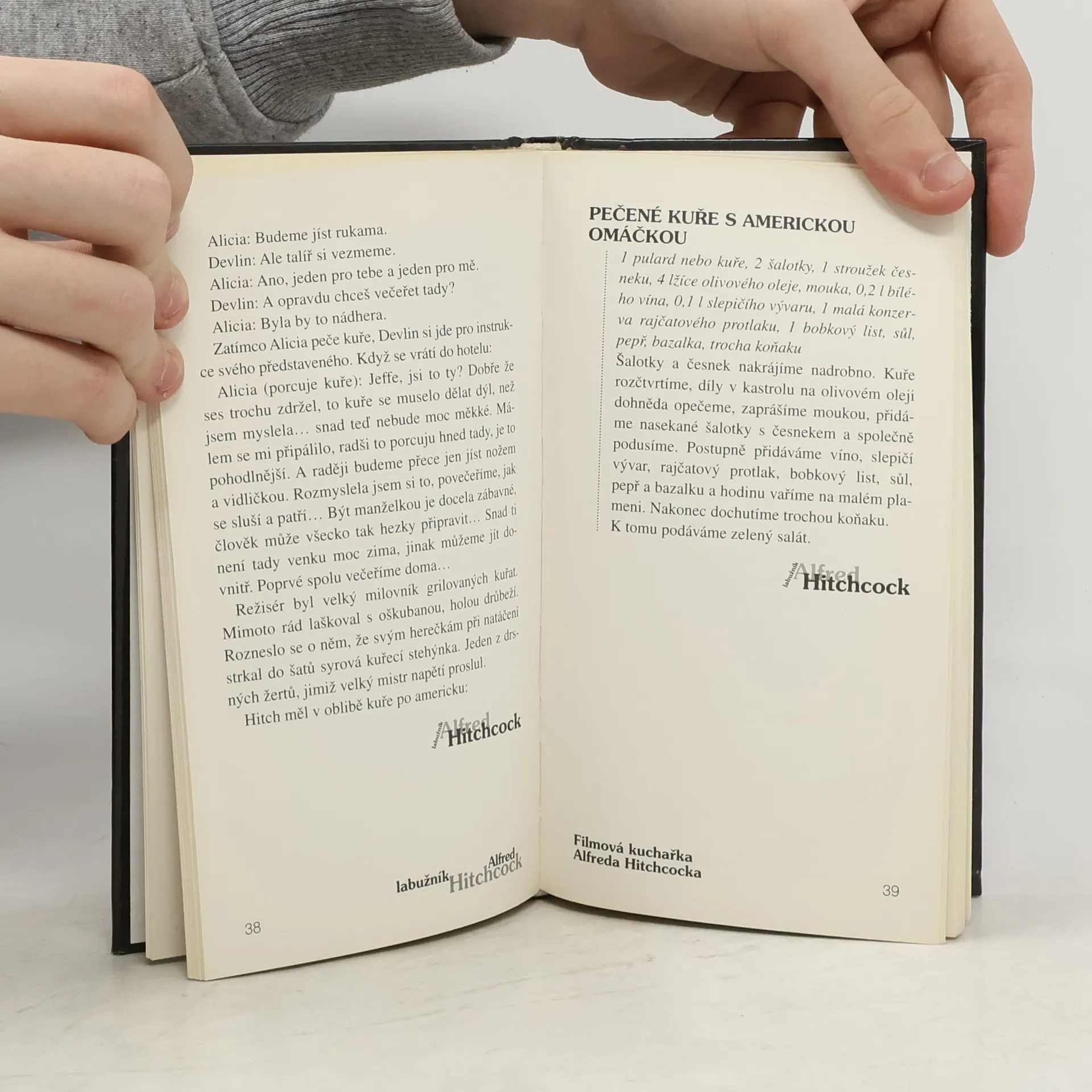 Některé proslulé Hitchcockovy filmové scény související s jídlem jsou doplněny výběrem receptů.