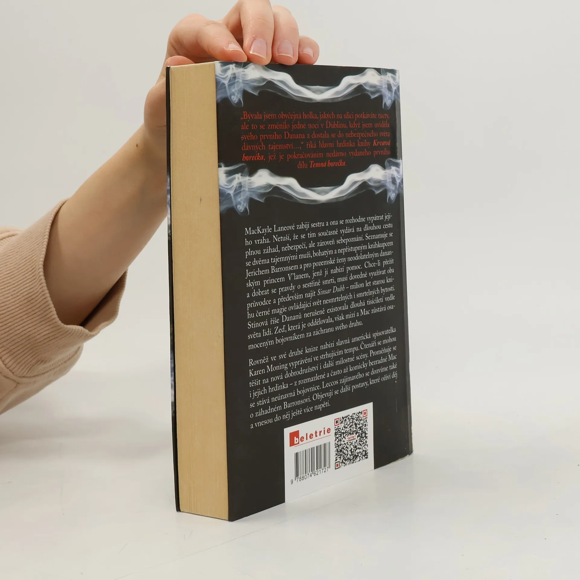 Druhý díl z pětidílné řady od úspěšné autorky přináší pokračování příběhu hlavní hrdinky, která se po smrti své sestry rozhodne vypátrat jejího vraha. Její cesta ji zavede do nebezpečného světa Nesmrtelných a dávných tajemství, kde se setkává s tajemnými muži – bohatým knihkupcem Jerichem Barronsem a přitažlivým dananským princem V’lanem. Aby přežila a odhalila pravdu o sestřině smrti, musí se naučit důvtipně využívat pomoc obou mužů, kterým však nedůvěřuje. Klíčem k jejímu úspěchu je nalezení Sinsar Dubh, starobylé knihy černé magie, která ovládá svět nesmrtelných i smrtelných bytostí. Stínová říše Dananů, která po tisíciletí existovala vedle lidského světa, se začíná prolínat s realitou, a Mac se stává osamělým bojovníkem za záchranu svého druhu. Autorka zvyšuje tempo a nabízí nová dobrodružství a milostné scény, zatímco postavy se vyvíjejí a prohlubují. Mac se proměňuje z rozmazlené dívky v neúnavnou bojovnici, zatímco se dozvídáme více o Barronsovi. Nové postavy oživují děj a přinášejí napětí, zatímco autorčina precizní práce s dialogy posouvá příběh k dalšímu očekávanému pokračování.