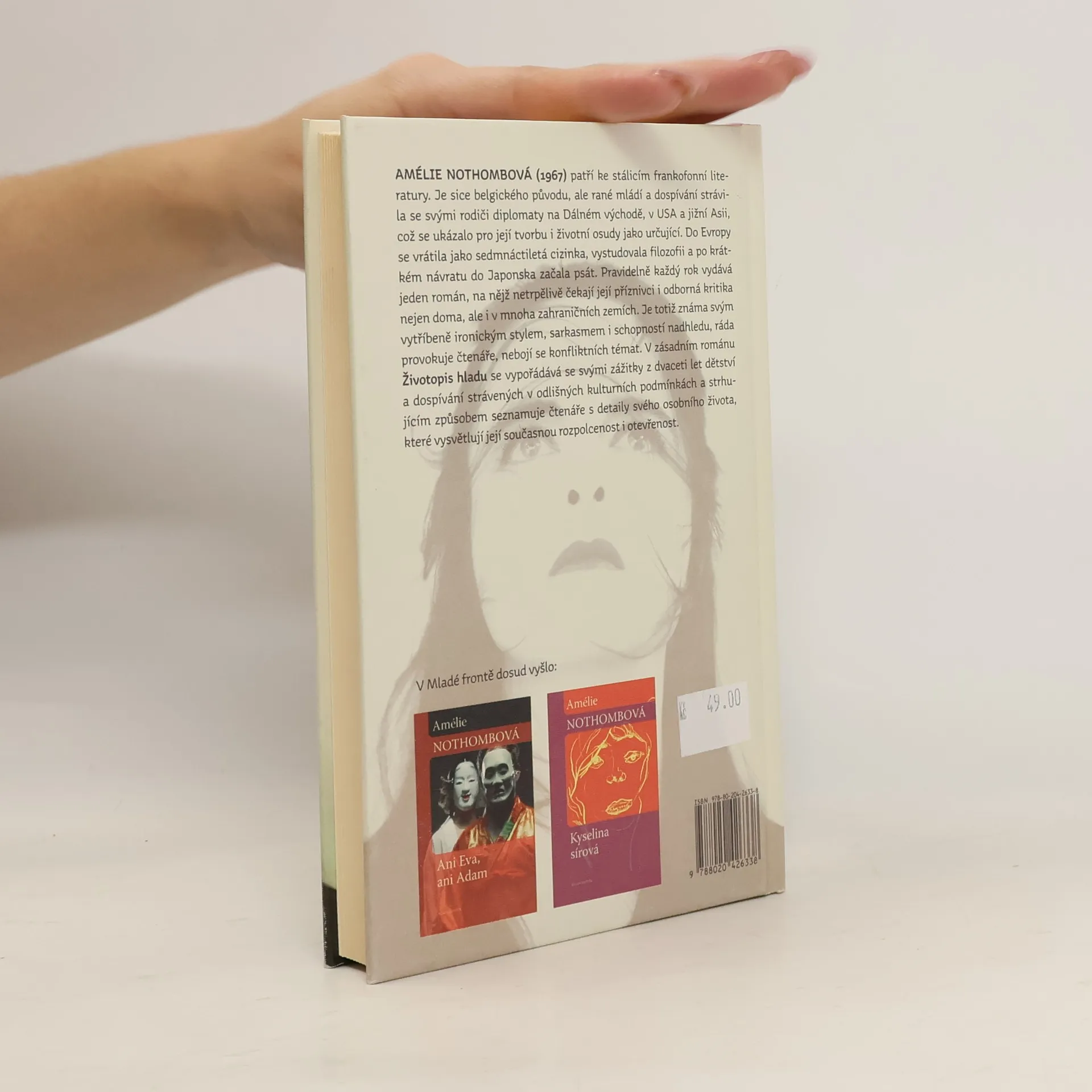Amélie Nothombová patří ke stálicím francouzského literárního světa. Je sice belgického původu, ale rané mládí a dospívání strávila se svými rodiči diplomaty na Dálném východě a v USA, což se ukázalo pro její tvorbu jako určující. Do Evropy se vrátila jako sedmnáctiletá, vystudovala, krátce nato začala psát a ročně vydává jeden román, na který netrpělivě čekají její příznivci i odborná kritika nejen ve Francii, ale i v mnoha zahraničních zemích včetně Česka. Je totiž známa svým vytříbeně ironickým stylem a sarkasmem, ráda provokuje čtenáře, nebojí se konfliktních témat. V románu Životopis hladu se vypořádává se svými zážitky z dvaceti let dětství a dospívání strávených v odlišných kulturních podmínkách a strhujícím způsobem seznamuje čtenáře s detaily svého osobního života, které vysvětlují její současnou rozpolcenost i otevřenost.