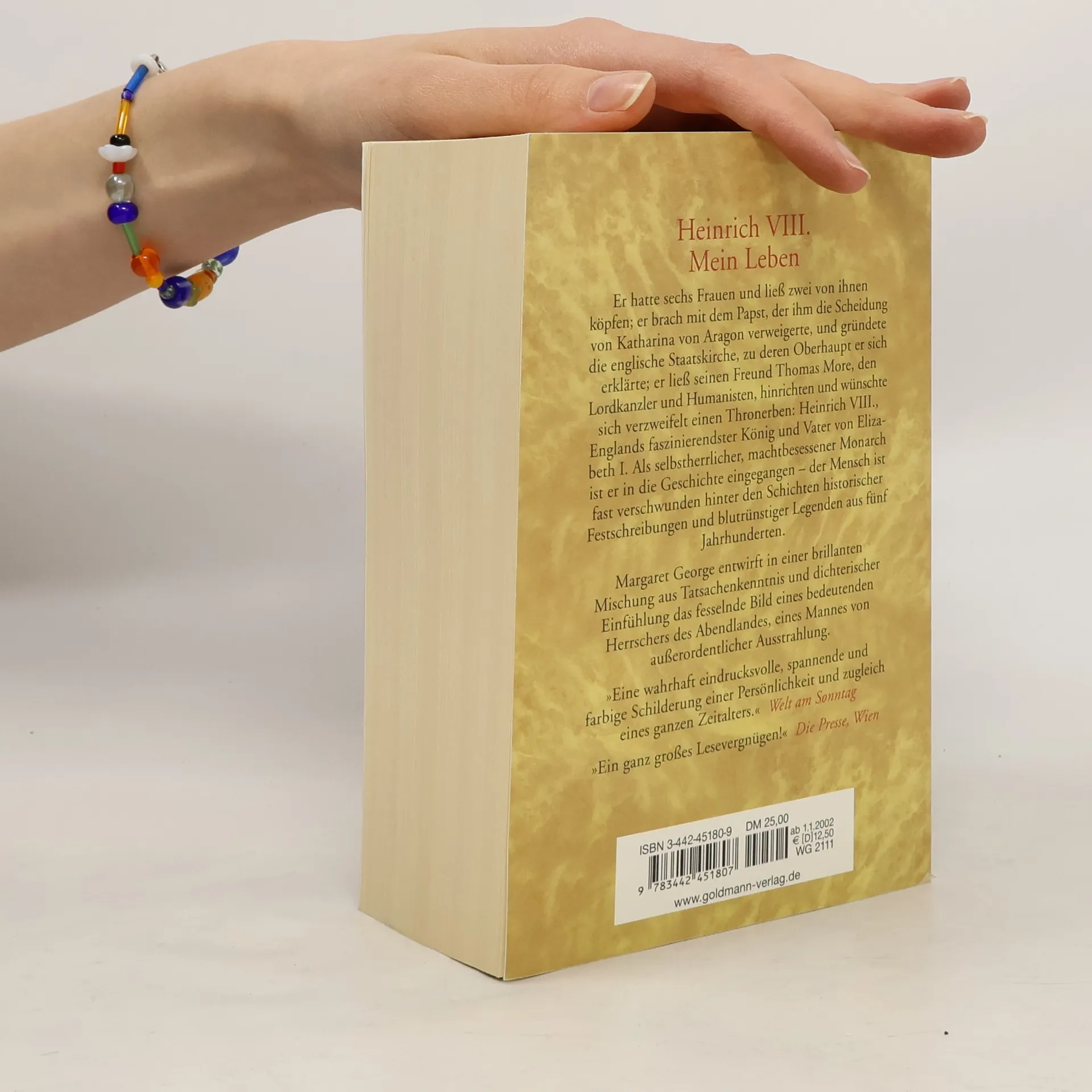 Er regierte England (1509-1547) und Irland und war ein stolzer Waliser. Er hatte sechs Frauen und ließ zwei von ihnen köpfen; er brach mit der römischen Kirche, weil sie ihm die Scheidung verweigerte, und gründete die anglikanische; er ließ seinen Freund Thomas Morus hinrichten und wünschte sich verzweifelt einen Thronfolger. Als machtbesessener, selbstherrlicher Monarch ist Heinrich VIII. in die Geschichte eingegangen. Doch er hatte noch ganz andere Seiten. Margaret George zeichnet das Bild eines Mannes voller Widersprüche, doch mit großer charismatischer Ausstrahlung, der mehrere Sprachen spricht, mit den Humanisten verkehrt, sich aber auch für das Glücksspiel, den Tanz und die Jagd begeistert.