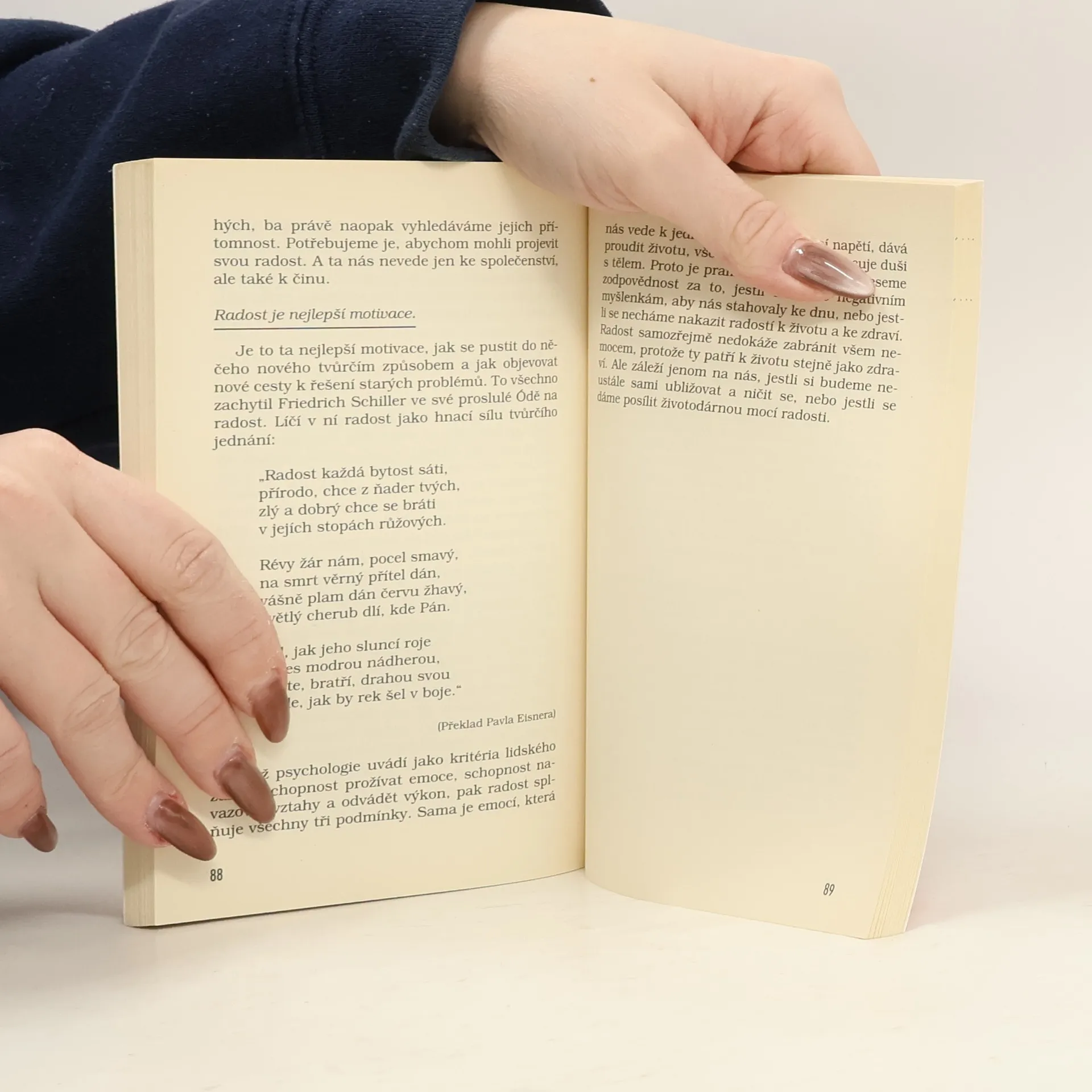 Setkání s radostí uzdravuje tělo i duši. Proto má být tato kniha pozváním k obnově radosti v hloubi vlastního srdce. Při četbě o radostných zkušenostech jiných lidí se můžeme přiblížit ke zdroji radosti ukrytému v našem nitru. Snad tento pramen nově vytryskne. Nechme se povzbudit k tomu, abychom se znovu podívali na svůj život, tentokrát z hlediska radosti. Pak v něm objevíme stopy radosti a naděje. Na základě zmíněných stop můžeme objevit stezku, po níž je třeba se vydat, abychom žili svůj život zdravě a naplno v té jedinečnosti, kterou mu propůjčil Bůh, abychom v něm našli vlastní duchovní cestu, která nás dovede k Pánu i k našemu skutečnému já.