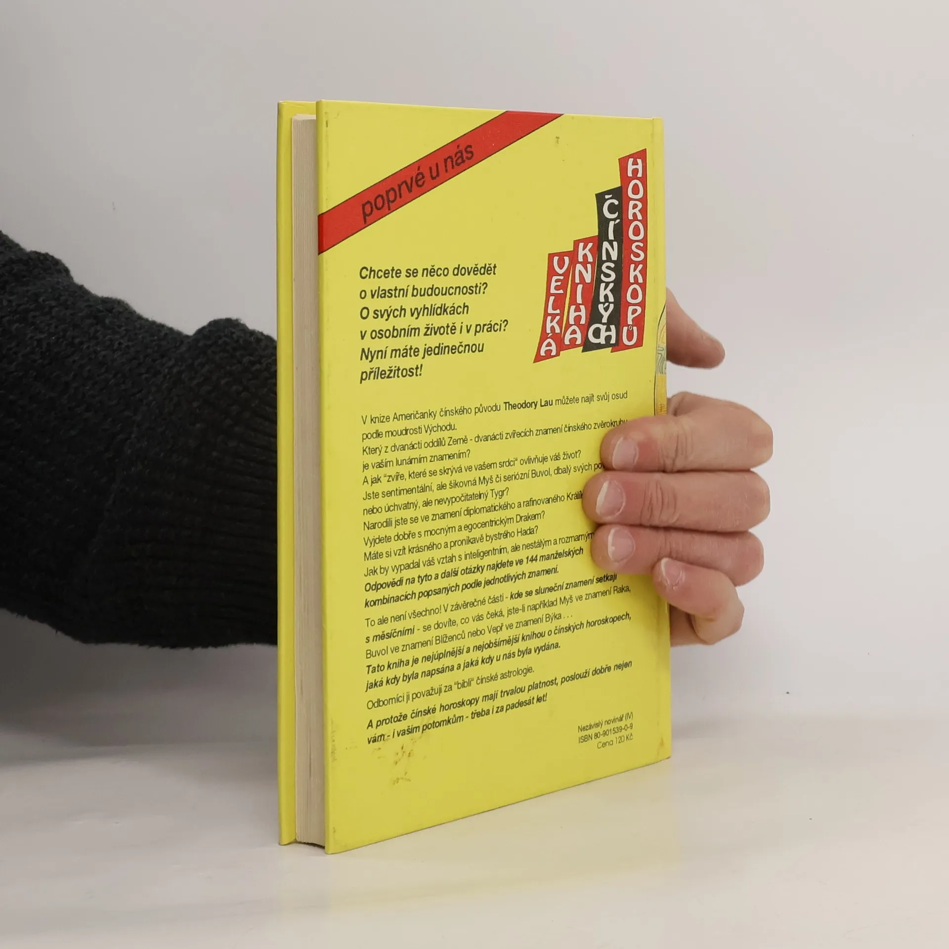 Chcete se něco dozvědět o vlastní budoucnosti? O svých vyhlídkách v osobním životě i v práci? Nyní máte jedinečnou příležitost! V knize Američanky čínského původu Theodory Lau můžete najít svůj osud podle moudrosti Východu. Který z dvanácti oddílů Země - dvanácti zvířecích znamení čínského zvěrokruhu je vaším lunárním znamením? A jak "zvíře, které se skrývá ve vašem srdci" ovlivňuje váš život? Jste sentimentální, ale šikovná Myš či seriózní Buvol, dbalý svých povinností, nebo úchvatný, ale nevypočitatelný Tygr? Narodili jste se ve znamení diplomatického a rafinovaného Králíka? Vyjdete dobře s mocným a egocentrickým Drakem? Máte si vzít krásného a pronikavě bystrého Hada? Jak by vypadal váš vztah s inteligentním, ale nestálým a rozmarným Koněm? Odpovědi na tyto a další otázky najdete ve 144 manželských kombinacích popsaných podle jednotlivých znamení. To ale není všechno! V závěrečné části - kde se sluneční znamení setkávají s měsíčními - se dozvíte, co vás čeká, jste-li například Myš ve znamení Raka, Buvol ve znamení Blíženců nebo Vepř ve znamení Býka... Tato kniha je nejúplnější a neobšírnější knihou o čínských horoskopech, jaká byla kdy napsána a jaký kdy u nás byla vydána. Odborníci ji považují za "bibli" čínské astrologie. A protože čínské horoskopy mají trvalou platnost, poslouží dobře nejen vám - i vaším potomkům- třeba i za padesát let!... celý text