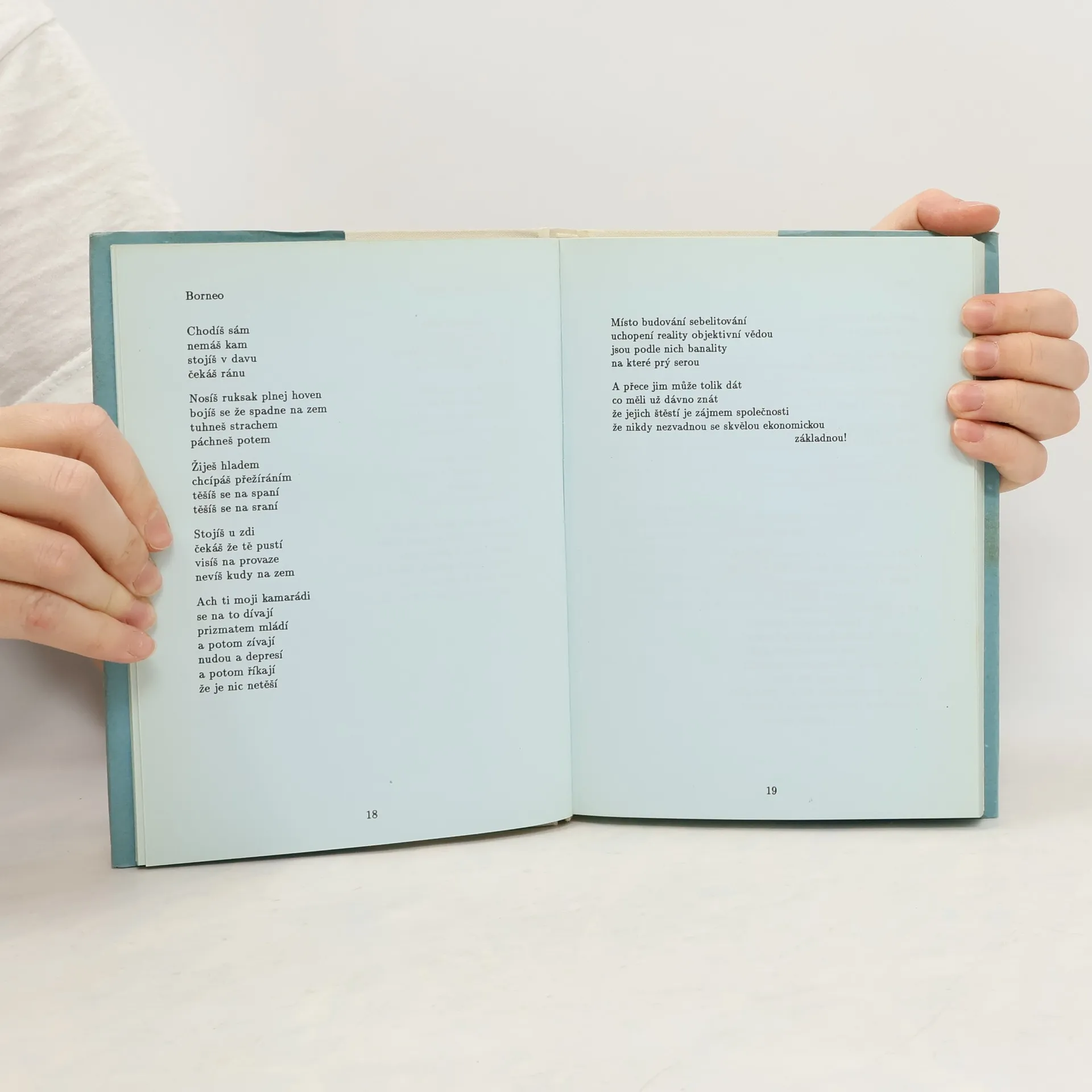 Texty Karla Davida pro Ještě jsme se nedohodli, Dunaj, Ivu Bittovou a další. Vytištěno na modrém papíře.