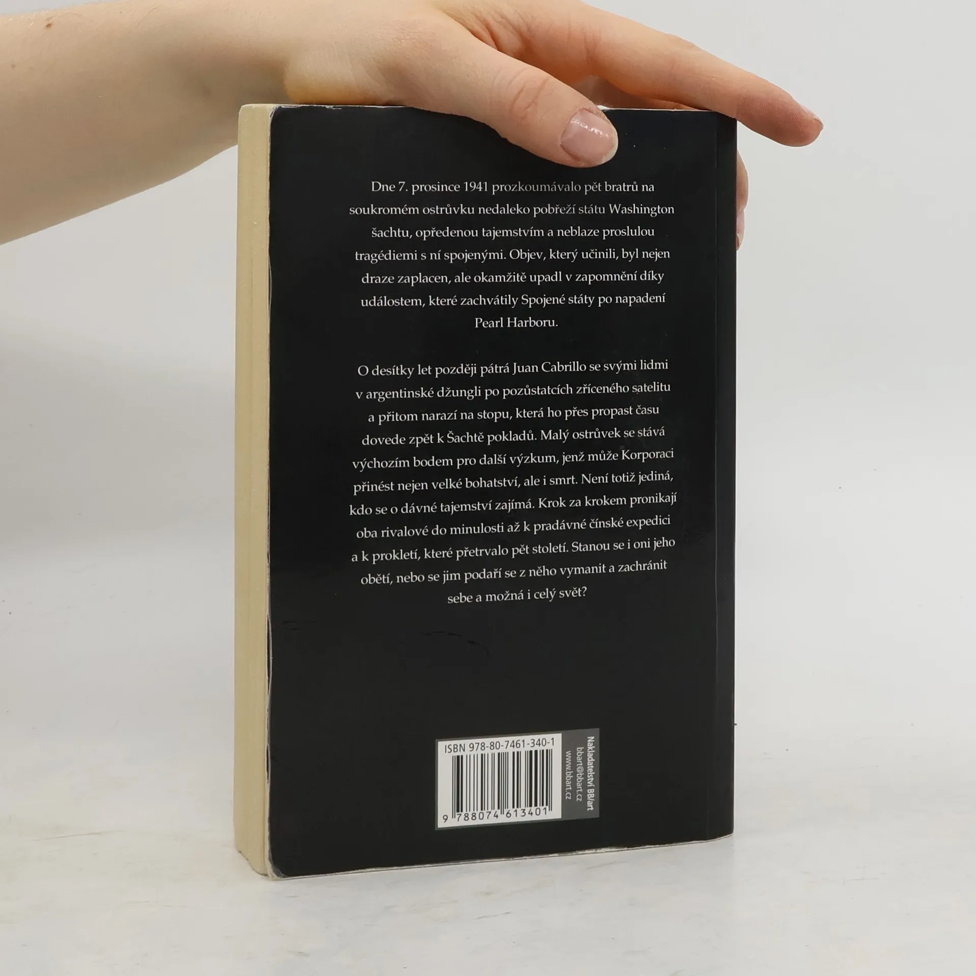 Cusslerovy příběhy o Oregonu, jeho posádce a Korporaci – chytrém, neporazitelném Juanu Cabrillovi a jeho veselé partě houževnatých, důvtipných bojovníků a bojovnic – si mezi čtenáři získaly statisíce fanoušků. I sedmé dobrodružství Oregonu je pozoruhodné. Dne 7. prosince 1941 prozkoumávalo pět bratrů na soukromém ostrůvku nedaleko pobřeží státu Washington šachtu, opředenou tajemstvím a neblaze proslulou tragédiemi s ní spojenými. Objev, který učinili, byl nejen draze zaplacen, ale okamžitě upadl v zapomnění díky událostem, které zachvátily Spojené státy po napadení Pearl Harboru. O desítky let později pátrá Juan Cabrillo se svými lidmi v argentinské džungli po pozůstatcích zříceného satelitu a přitom narazí na stopu, která ho přes propast času dovede zpět k Šachtě pokladů. Malý ostrůvek se stává výchozím bodem pro další výzkum, jenž může Korporaci přinést nejen velké bohatství, ale i smrt. Není totiž jediná, kdo se o dávné tajemství zajímá. Krok za krokem pronikají oba rivalové do minulosti až k pradávné čínské expedici a k prokletí, které přetrvalo pět století. Stanou se i oni jeho obětí, nebo se jim podaří se z něho vymanit a zachránit sebe a možná i celý svět? Druhé vydání. -- zdroj: www.legie.info --