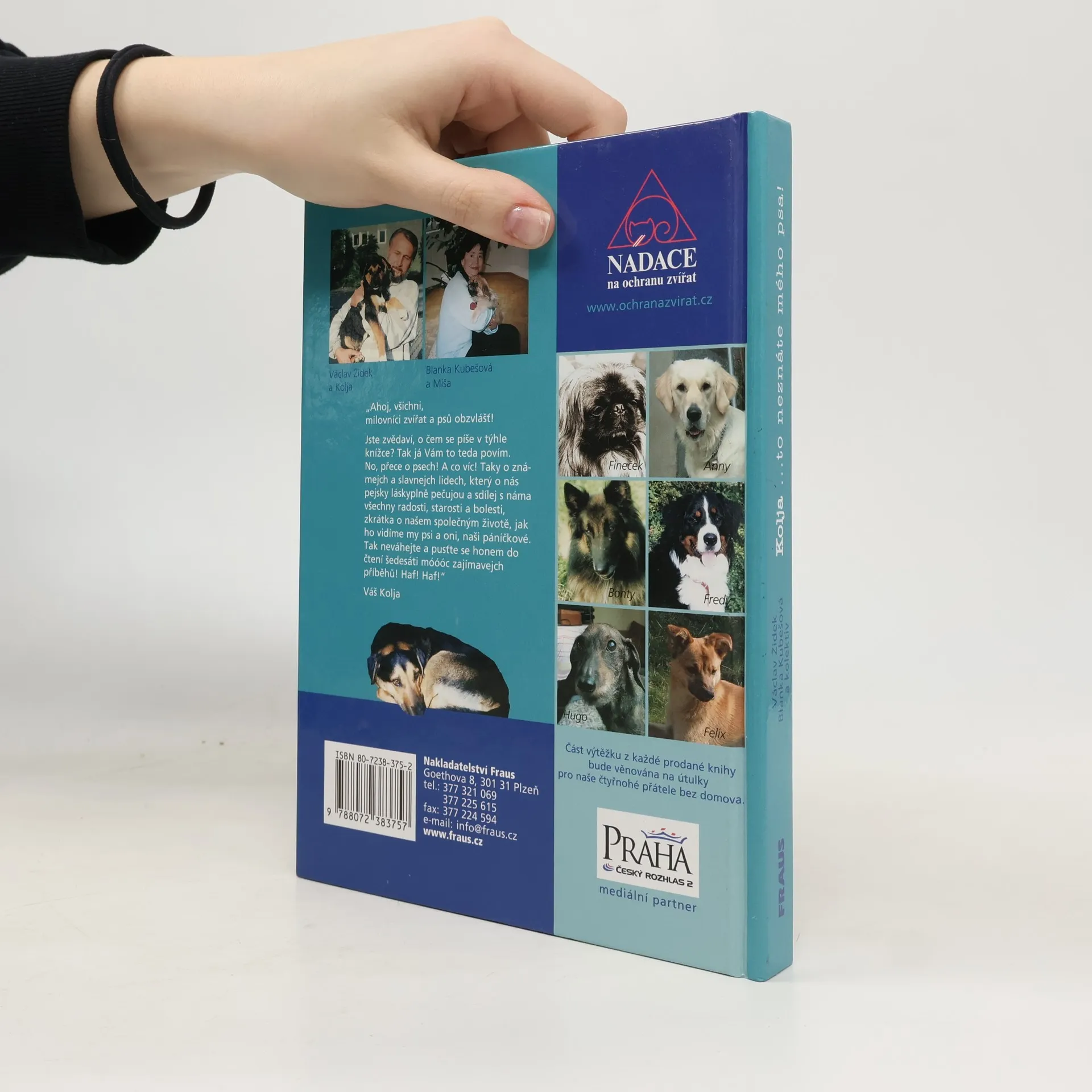 V knize „Kolja…to neznáte mého psa!“ čtenář najde příběhy, které vypovídají o vzájemném vztahu mezi člověkem a jeho věrným přítelem psem. Zjistí, jaký názor má na společný život pes a jak to vidí jeho páníček. O svých radostech, starostech, o lásce, bolesti i smrti vyprávějí české známé osobnosti a jejich psí mazlíčci. Hlavním autorem knihy je pan Václav Židek, druhou spoluautorkou je čechošvýcarská spisovatelka Blanka Kubešová. Na knize se kromě toho podílelo dalších 46 spoluautorů. Všichni autoři se vzdali svého honoráře ve prospěch útulků pro opuštěná zvířata (peníze budou zaslány Nadaci na ochranu zvířat, která je útulkům rozdělí).