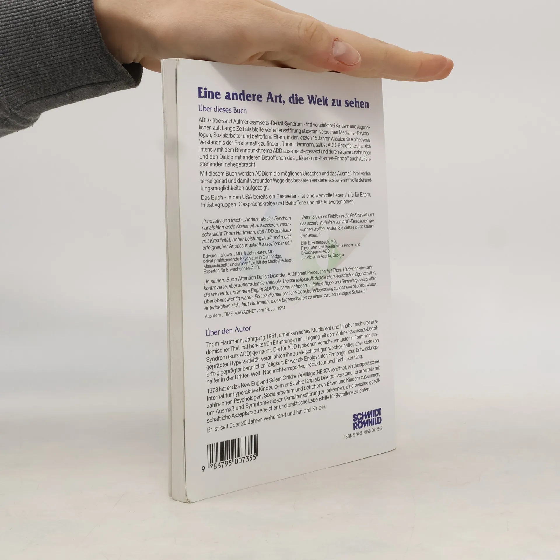 Lange Zeit wurde ADD bzw. AD(H)S als blosse Verhaltensstörung abgetan. Mediziner, Psychologen, Sozialarbeiter und betroffene Eltern versuchten in den letzten 15 Jahren, Ansätze für ein besseres Verständnis von ADD zu finden. Thom Hartmann, Therapeut und selbst ADD-Betroffener, hat durch eigene Erfahrungen und im Dialog mit anderen ADDern das „Jäger-und-Farmer-Prinzip“ auch Außenstehenden nahegebracht. Das Buch zeigt ADDern die möglichen Ursachen und das Ausmass ihrer Verhaltenseigenart sowie sinnvolle Behandlungsmöglichkeiten auf. Wertvolle Lektüre für Betroffene und Angehörige, Initiativgruppen, Gesprächskreise u. v. m.