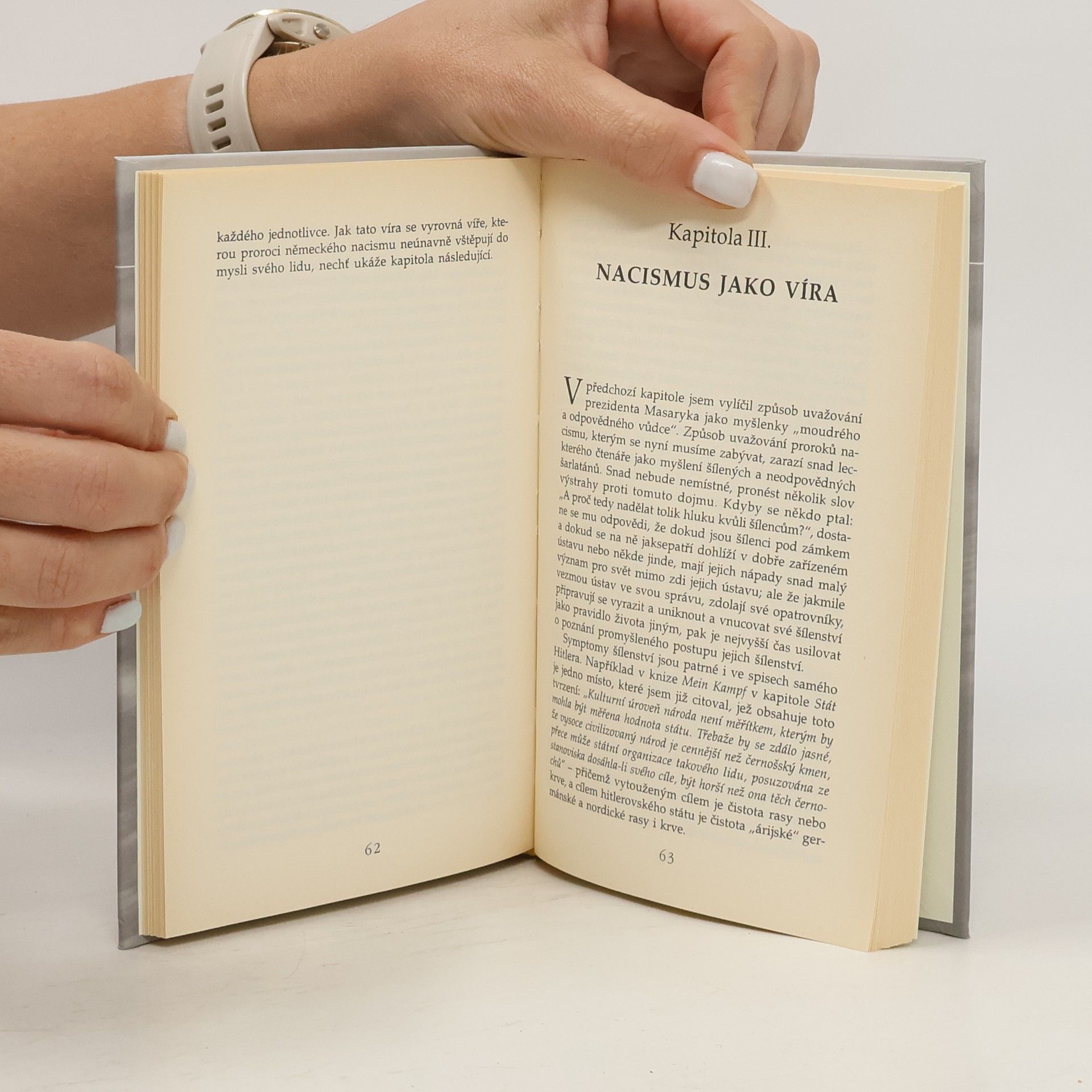 Britský profesor středoevropských dějin v této knize srovnává principy diktatury a demokracie na základě Hitlerova spisku Mein Kampf a Masarykova díla Světová revoluce. Klade si přitom otázku, jaký systém je pro člověka prospěšnější.