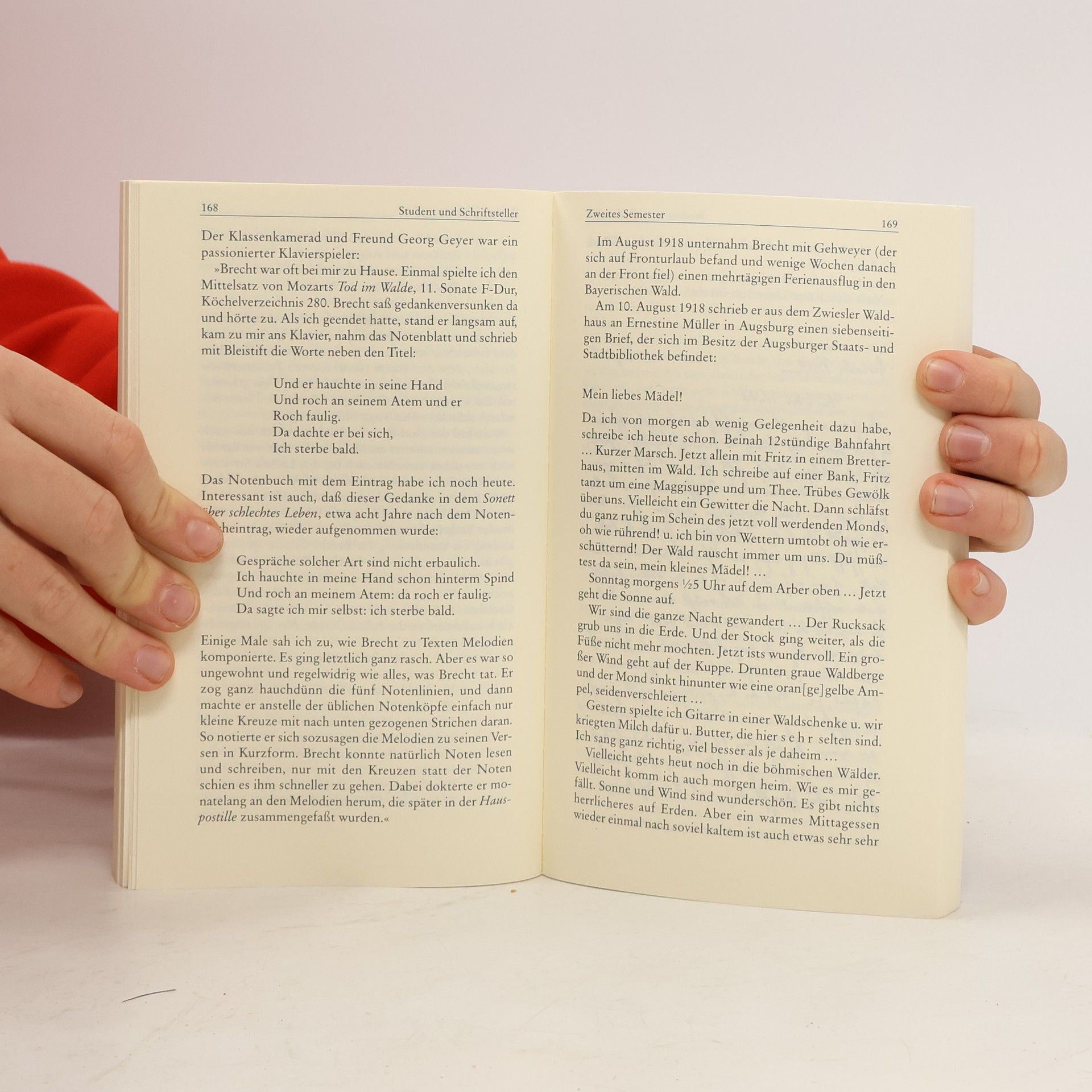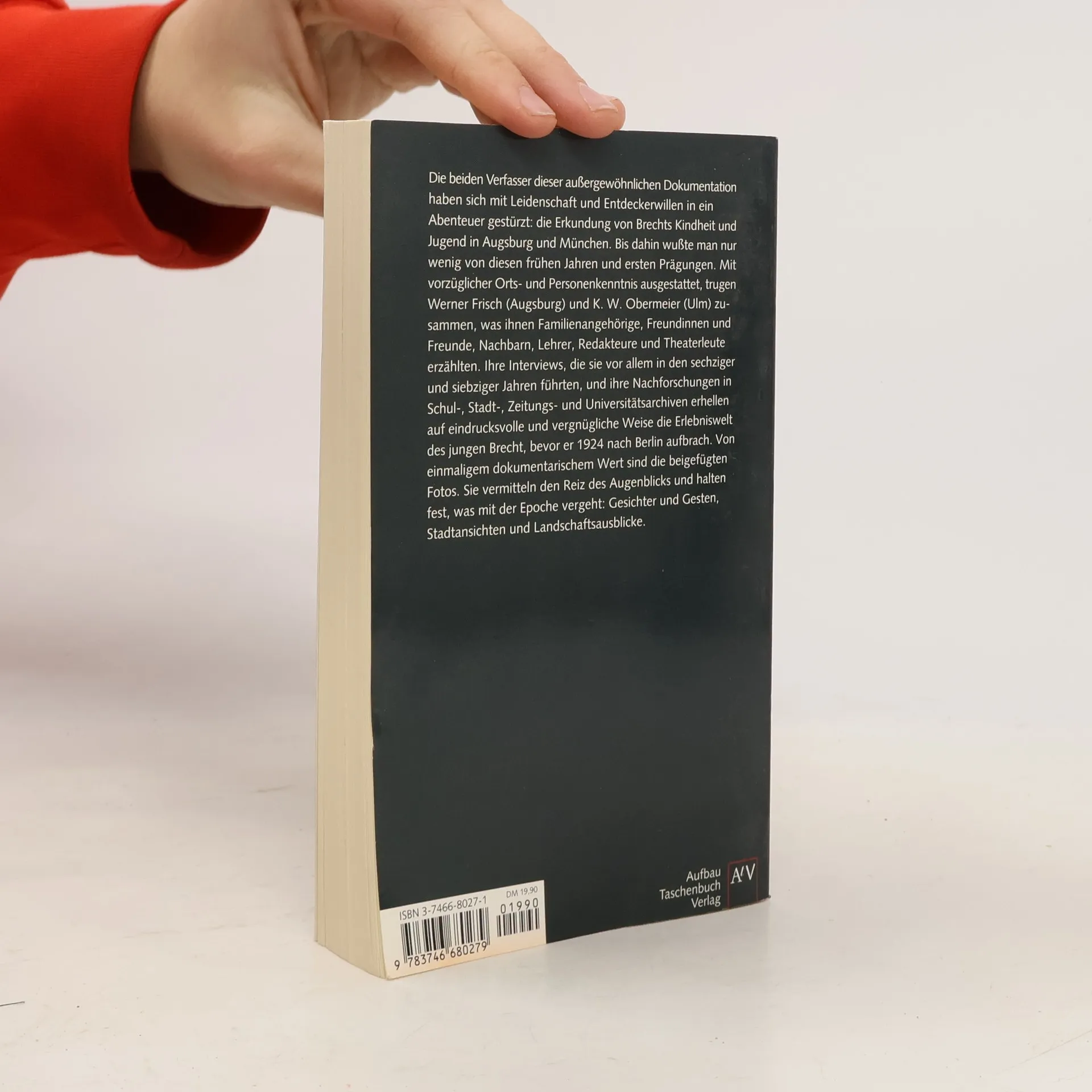 "Brecht in Augsburg" ist eine Montage. Ihr Material sind die Aussagen von Menschen, die Brecht kannten, als er noch nicht der berühmte Dichter war, sondern ein "schüchterner junger Mann". In jahrelanger Arbeit haben die Autoren Erinnerungen von Zeitgenossen protokolliert. Sie haben Schul-, Stadt-, Zeitungs- und Universitätsarchive durchstöbert, um die Erlebniswelt des jungen Brecht zu erkunden. Was machte Brecht mit seiner Freizeit? Wer waren seine Freunde und Freundinnen? Entstanden ist ein Buch , das ein vergnügliches Bild der Augsburger Jahre bis 1924 vermittelt, als Brecht nach Berlin aufbrach. Besonders eindrucksvoll sind die zahlreichen, zum Teil seltenen Fotos von Stadt und Landschaft, Familie und Freunden.