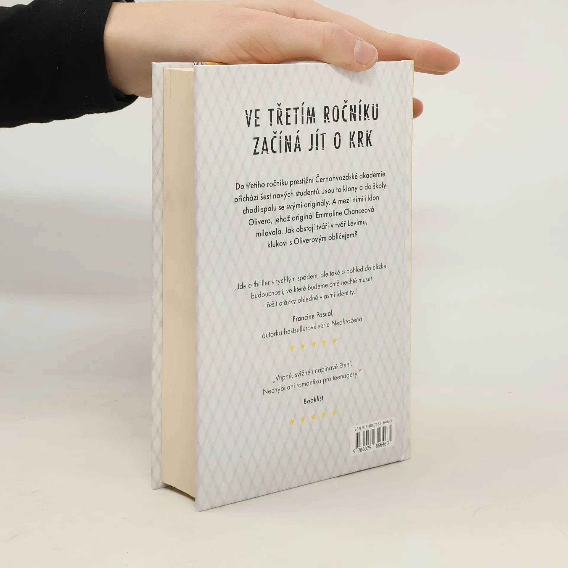 Letos na podzim přichází do třetího ročníku prestižní Černohvozdské akademie šest nových studentů. Ale nejsou to jen tak obyčejní ambiciózní teenageři. Jsou to klony. A do školy chodí spolu se svými originály. Dvojníci jsou předmětem každé konverzace. Co jsou tyto klony zač? Proč všichni chodí na Černohvozd? A kdo je ten šílenec, který porušil zákon, aby je stvořil? Emmaline Chanceové je to ukradené. Její nejlepší kamarád Oliver v létě zemřel a ona se musí ze všech sil snažit, aby bez něj den za dnem přežila. Poté se však ocitne tváří v tvář Levimu – jednomu z Dvojníků a přesné kopii Oliverova DNA. Emma je záhy vtažena do party Dvojníků. Nemůže uniknout znepokojivým pravdám o klonech a svém prestižním internátu. Nikomu se nedá důvěřovat… Dokonce ani chlapci s Oliverovým obličejem, který se jí zamlouvá čím dál víc…