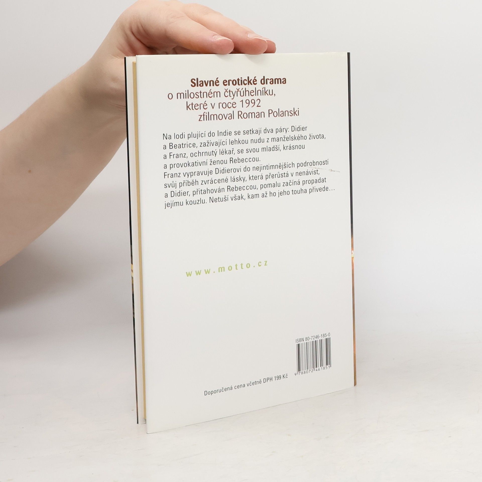 Slavné erotické drama o milostném čtyřúhelníku, které v roce 1992 zfilmoval Roman Polanski Příběh lásky, která přerostla v nenávist Na lodi plující do Indie se setkají dva páry: Didier a Beatrice, zažívající lehkou nudu z manželského života, a Franz, ochrnutý lékař, se svou mladší, krásnou a provokativní ženou Rebeccou. Franz vypravuje Didierovi do nejintimnějších podrobností svůj příběh zvrácené lásky, která přerůstá v nenávist, a Didier, přitahován Rebeccou, pomalu začíná propadat jejímu kouzlu. Netuší však, kam až ho jeho touha přivede...