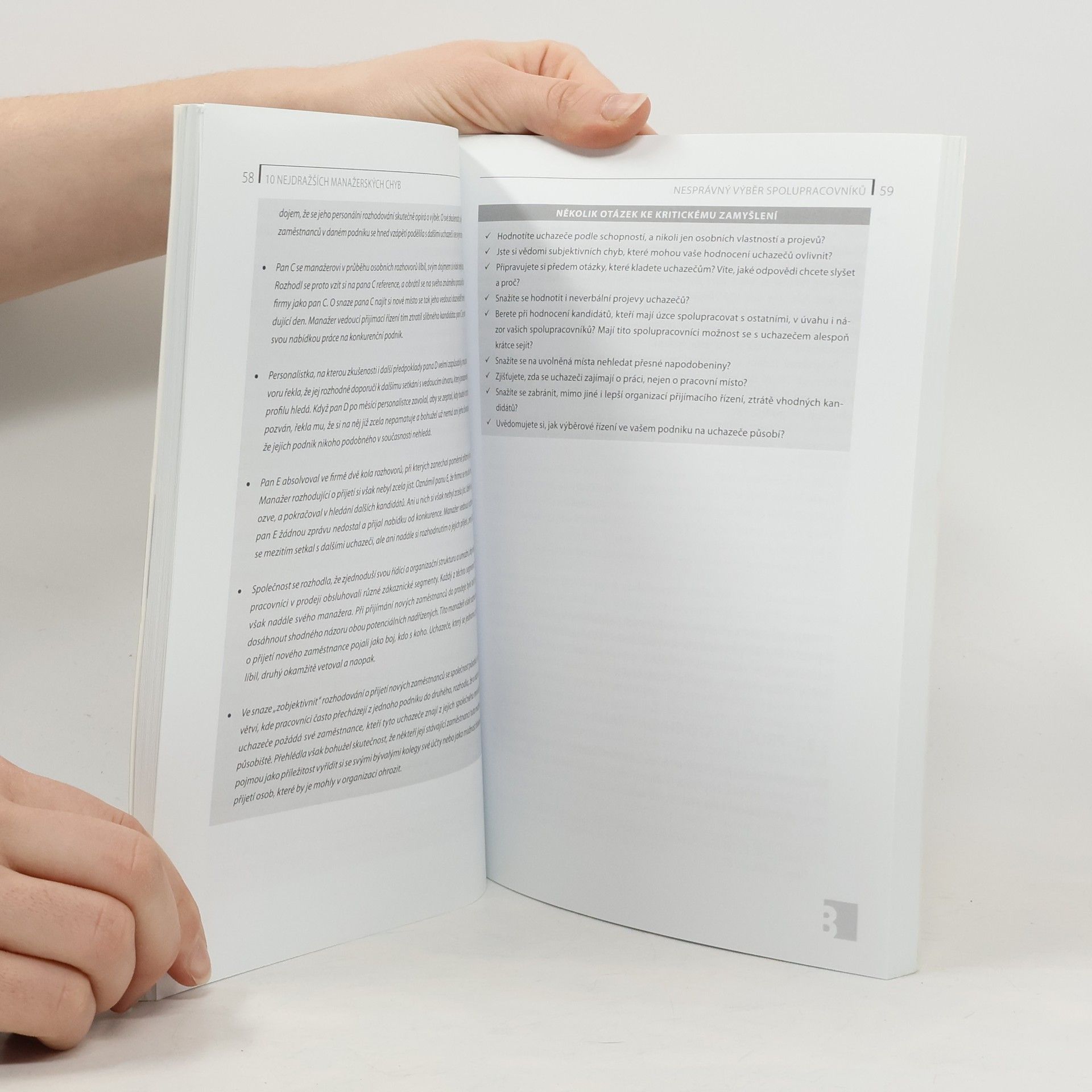 Učte se z chyb druhých, je zbytečné dělat vlastní chyby. Manažeři, kteří při řízení svých lidí dělají ty nejzásadnější chyby, své firmě škodí a stojí ji spoustu peněz. Neděláte vy či vaši kolegové manažeři tyto chyby také? Pojďte se na ně podívat a dozvědět se, jak se těchto chyb vyvarovat či je přestat dělat. Nejvíce firmě škodí manažeři, kteří nejsou schopni svým spolupracovníkům jasně říci, co od nich očekávají, nebo své požadavky stále mění, kteří nejsou schopni včas rozhodnout (a přitom trvají na tom, že budou rozhodovat o každé drobnosti), kteří se svým okolím nekomunikují a ponechávají je v nejistotě, kteří brání nezbytným změnám, vyžívají se v zastrašování svých podřízených apod. "Polehčující okolností" těchto manažerů je pouze to, že ukazují, čeho se vyvarovat. Demonstrují, jak (ne)ničit morálku zaměstnanců, jak (ne)bránit, aby lidé svým nadřízeným i podniku jako celku věřili a táhli s ním za jeden provaz nebo aby se sami snažili svou práci zlepšovat. Zaměřte se u sebe a v celé firmě na chyby, které patří k dlouhodobě nejzávažnějším - jsou to ty nejdražší řídicí chyby.