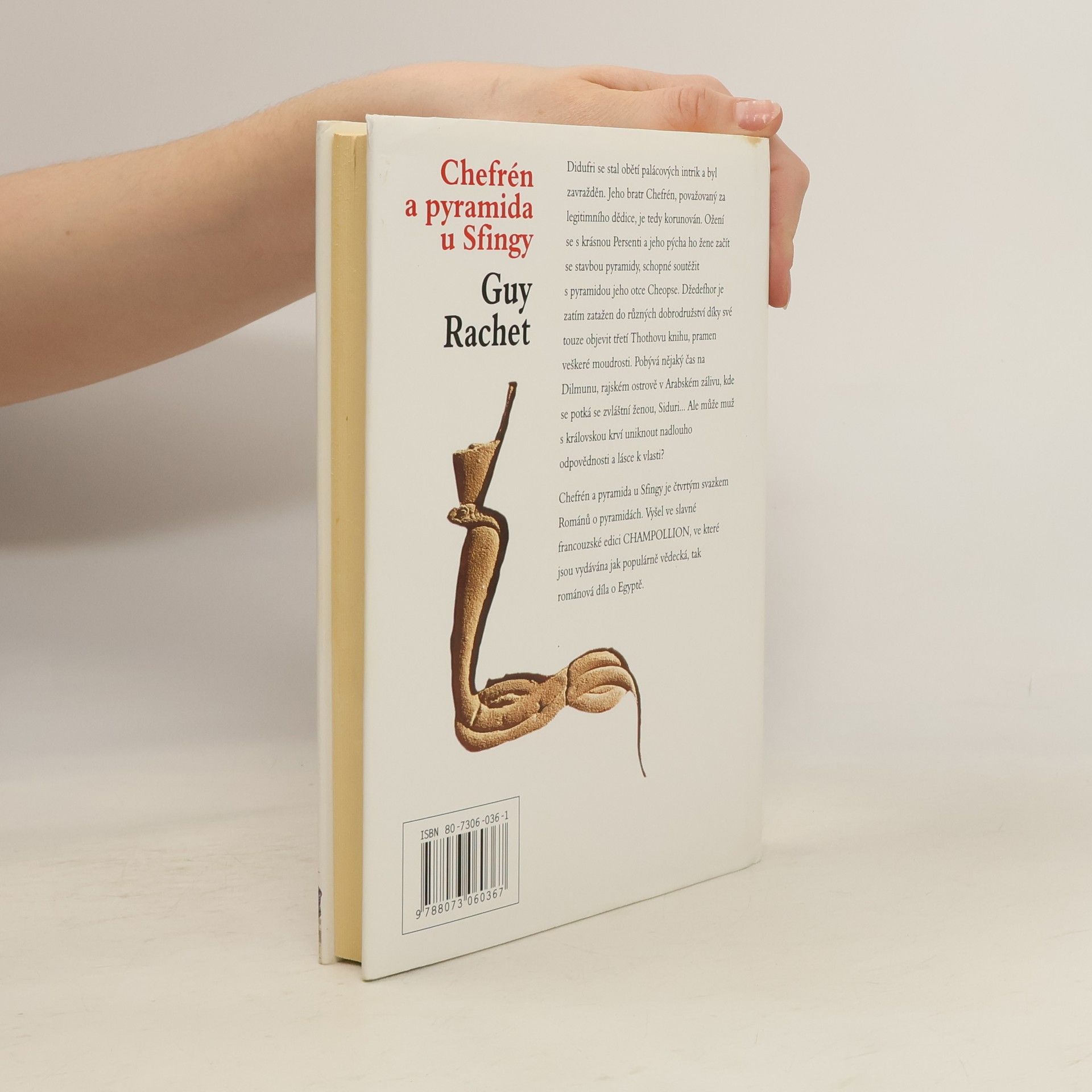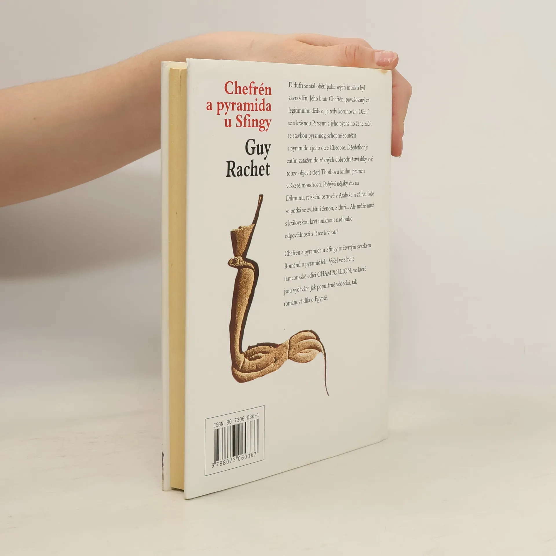 Podtitul: Nedokončená pyramida 4. díl cyklu Romány o pyramidách Čtvrté pokračování Románů o pyramidách je věnováno období panování faraona Chefréna, který po smrti svého bratra Didufriho získal korunu Egypta. Po své korunovaci upírá Chefrén všechnu svou pozornost a vůli na stavbu velkolepé vlastní pyramidy, honosnější než jeho otce Cheopse. Vládu zanedbává, v paláci se množí intriky, bují vášně a ženské pletky, starosti jsou i s dobrodružným životem faraonova bratra Džedefhora. Nakonec však Chefrén umírá po požití "nápoje lásky" a dědicem se stává jeho syn Mykerinos, jehož osudy budeme sledovat v posledním svazku pentalogie. I v této části rozsáhlého díla o starověkém Egyptě autor bohatě využívá svých odborných znalostí a úspěšně je snoubí s fantazií.