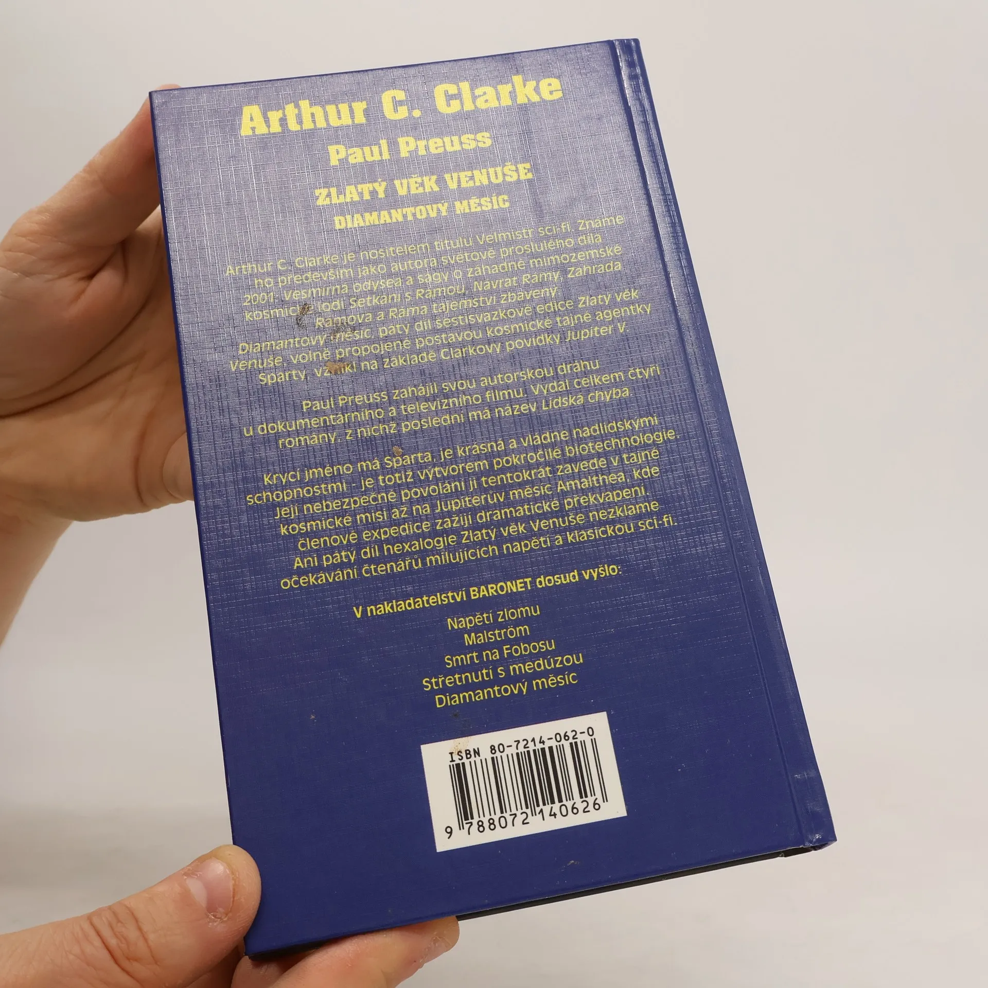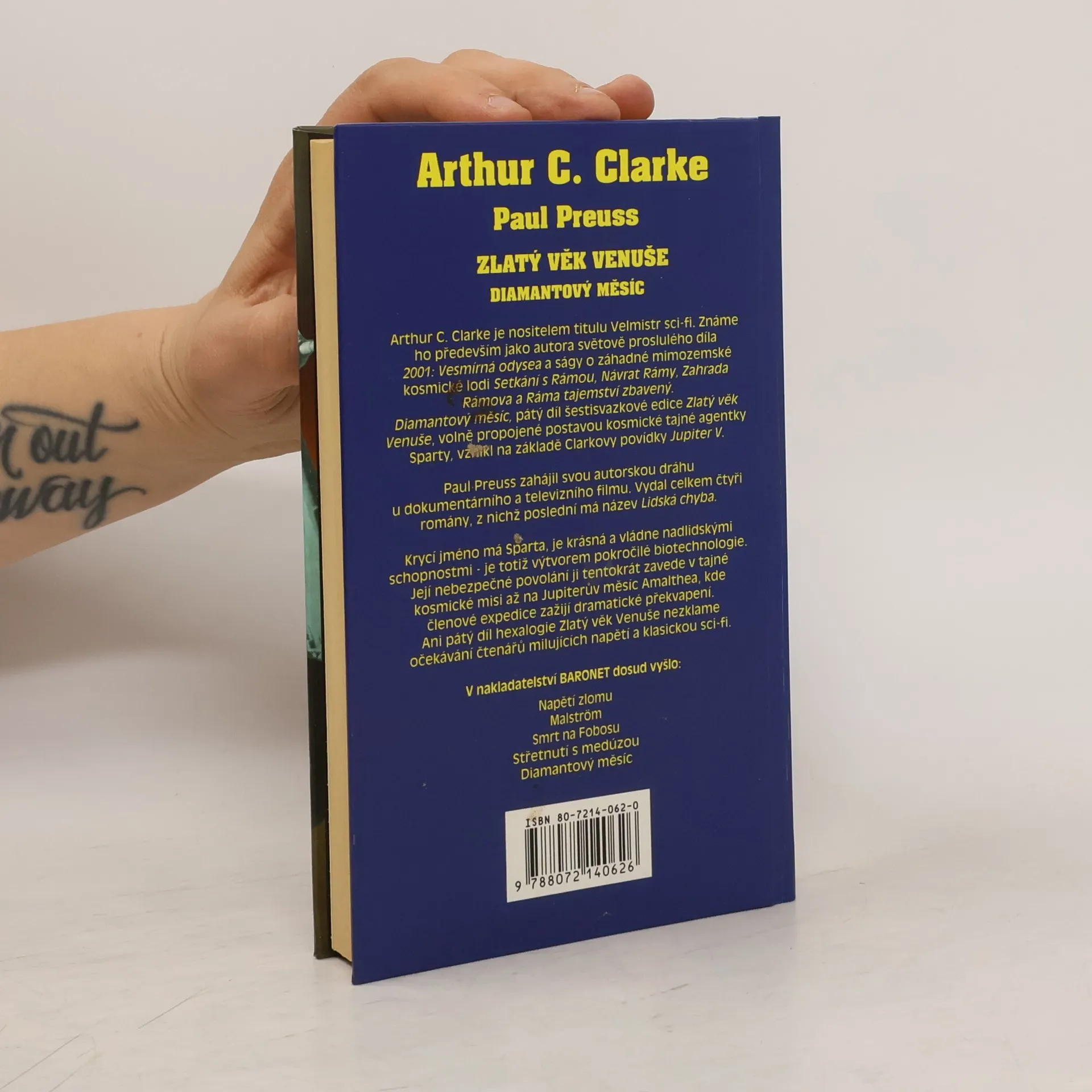 Arthur C. Clark je nositelem titulu Velmistr sci-fi. Známe ho především jako autora světově proslulého díla 2001: Vesmírná odysea a cyklu o záhadné gigantické kosmické lodi Ráma. Diamantový měsíc, pátý díl šestisvazkové edice Zlatý věk Venuše, volně propojené postavou kosmické tajné agentky Sparty, vznikl na základě Clarkovy povídky Jupiter V. Paul Press zahájil svou autorskou dráhu u dokumentárního a televizního filmu. Vydal celkem čtyři romány, z nichž poslední má název Lidská chyba. Krycí jméno má Sparta, je krásná a vládne nadlidskými schopnostmi – je totiž výtvorem pokročilé biotechnologie. Její nebezpečné povolání ji tentokrát zavede v tajné kosmické misi až na Jupiterův měsíc Amalthea, kde členové expedice zažijí dramatické překvapení. Ani pátý díl hexalogie Zlatý věk Venuše nezklame očekávání čtenářů milujících napětí a klasickou sci-fi.