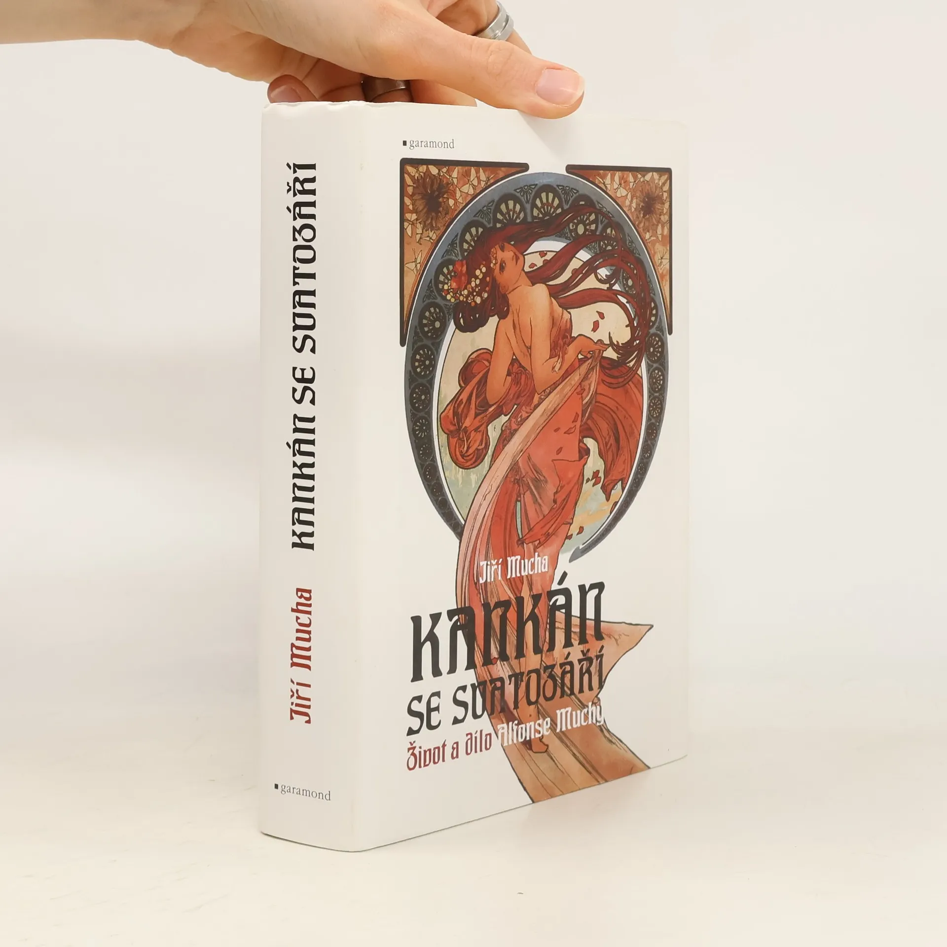 Kankán se svatozáří, vydaný v roce 1969, je biografický román o životě otce autora, Alfonse Muchy. Jiří Mucha barvitě líčí otcovy osudy od jeho skromného dětství v rodině ivančického soudního úředníka v roce 1860, přes studia v Brně, Vídni a Mnichově, až po jeho úspěch v Paříži, působení v Americe a závěr života v Čechách, kde ho zastihla smrt na pokraji druhé světové války. Alfons Mucha, který se stal mýtem, získává v tomto vyprávění lidský rozměr, doplněný o citace z jeho vlastních zápisků. Autor také výstižně zachycuje společensko-politické podmínky a kulturní kontext doby, v níž Mucha žil, ať už to byla rakousko-uherská Morava nebo moderní Paříž. Setkáváme se s historickými osobnostmi, jako jsou Paul Gauguin, Sarah Bernhardt, August Strindberg, James McNeill Whistler či August Rodin. Kromě toho se dozvídáme o úsměvných historkách, například jak se mikulovské dámy složily na kalhoty, když si Mucha roztrhl své, nebo jak s Maroldem sháněli mák na švestkové knedlíky v Paříži. Také se dozvídáme o tom, jak si čeští malíři posílali Ženíška, který se nakonec dostal na prkna Folies Bergere, kde hrál žábu.