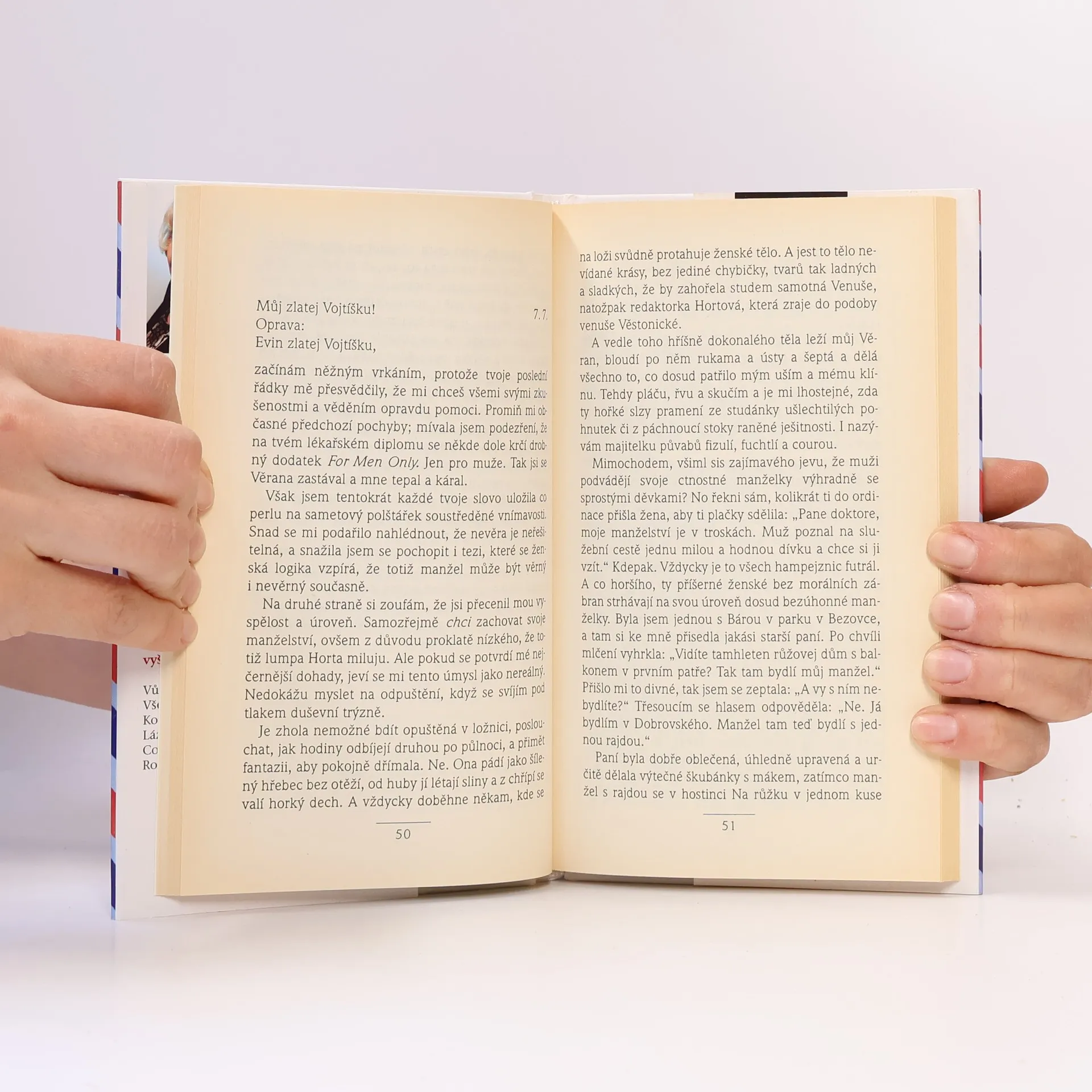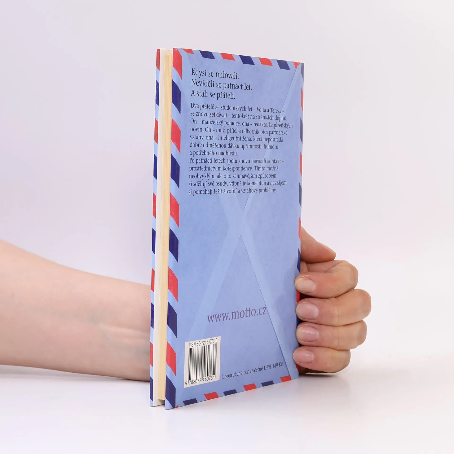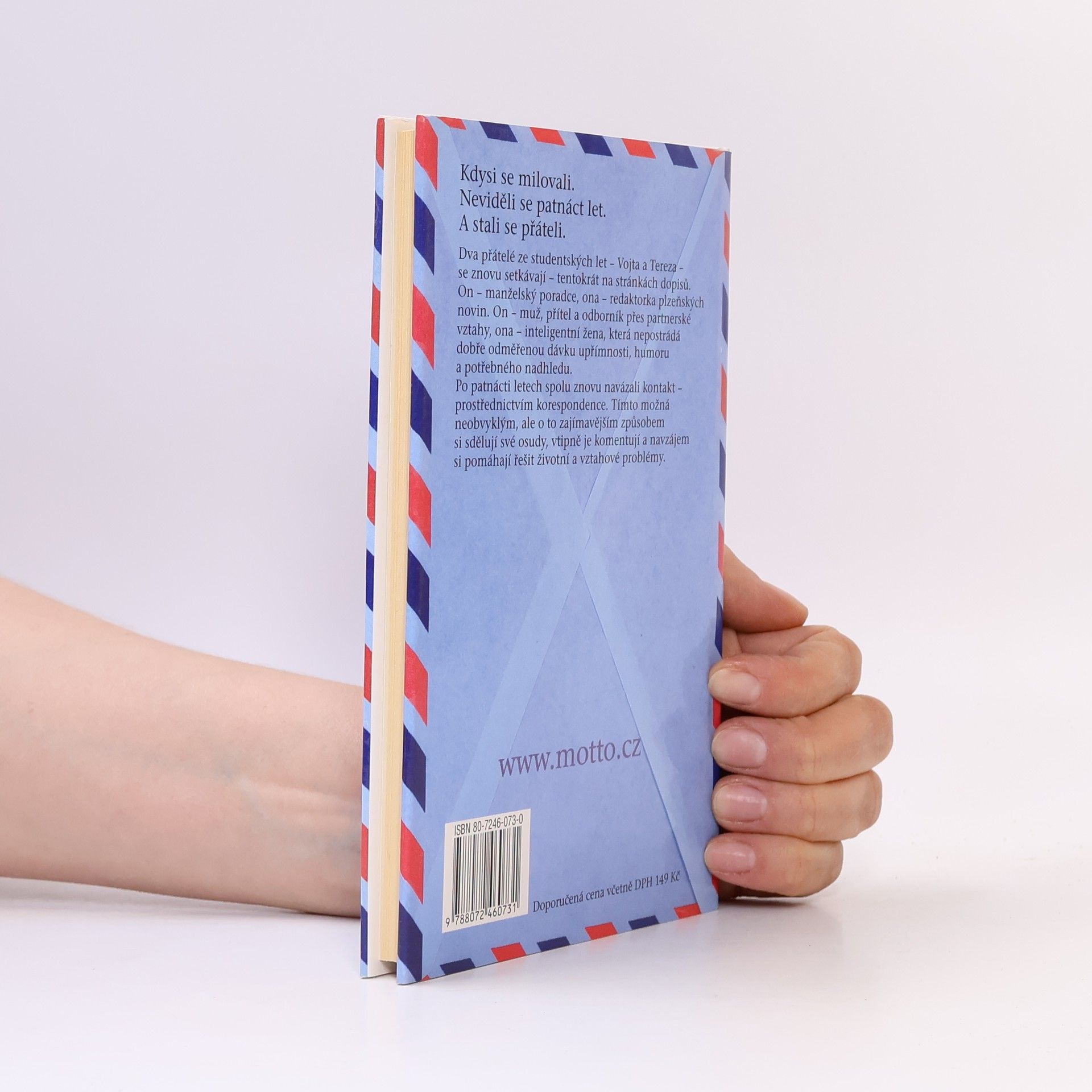 Dva přátelé ze studentských let - Vojta a Tereza - se znovu setkávají - tentokrát na stránkách dopisů. On - manželský poradce, ona - redaktorka plzeňských novin. On - muž, přítel a odborník přes partnerské vztahy, ona - inteligentní žena, která nepostrádá dobře odměřenou dávku upřímnosti, humoru a potřebného nadhledu. Po patnácti letech spolu znovu navázali kontakt - prostřednictvím korespondence. Tímto možná neobvyklým, ale o to zajímavějším způsobem si sdělují své osudy, vtipně je komentují a navzájem si pomáhají řešit životní a vztahové problémy.... celý text