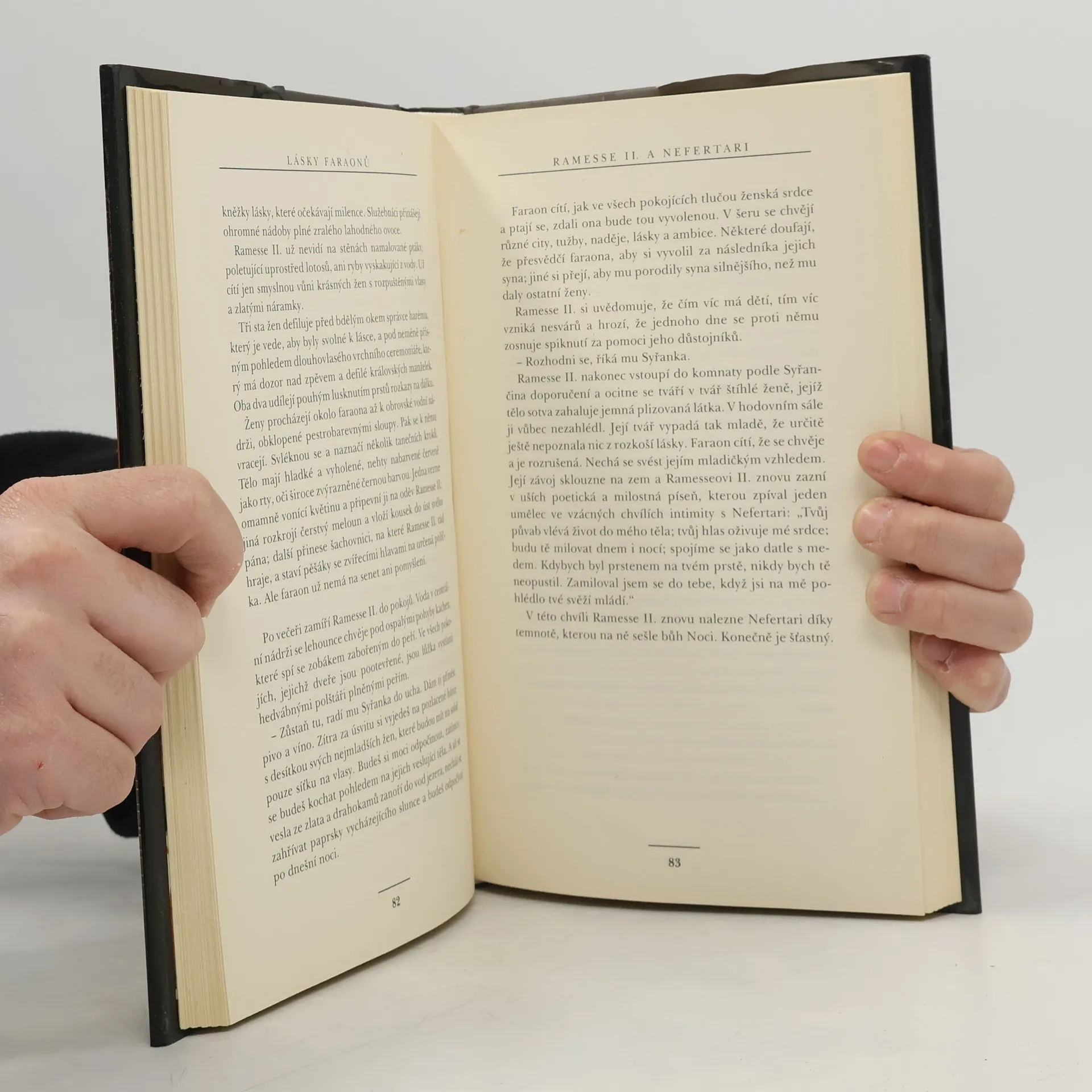 Lásky faraonů jsou zajímavým nahlédnutím do soukromí dávných vládců Egypta.Vyprávějí o vášnivých,pomíjivých,dojímavých a často vypočítavých láskách faraonů,které se odehrávají na pozadí vyjímečných historických období.Nefertiti a Achnatona za 18.dynastie,Ramesse II. a Nefertari za 19.dynastie,Ramesse III. a Tije za 20.dynastie a Kleopatřiny lásky za Ptolemaiovců.