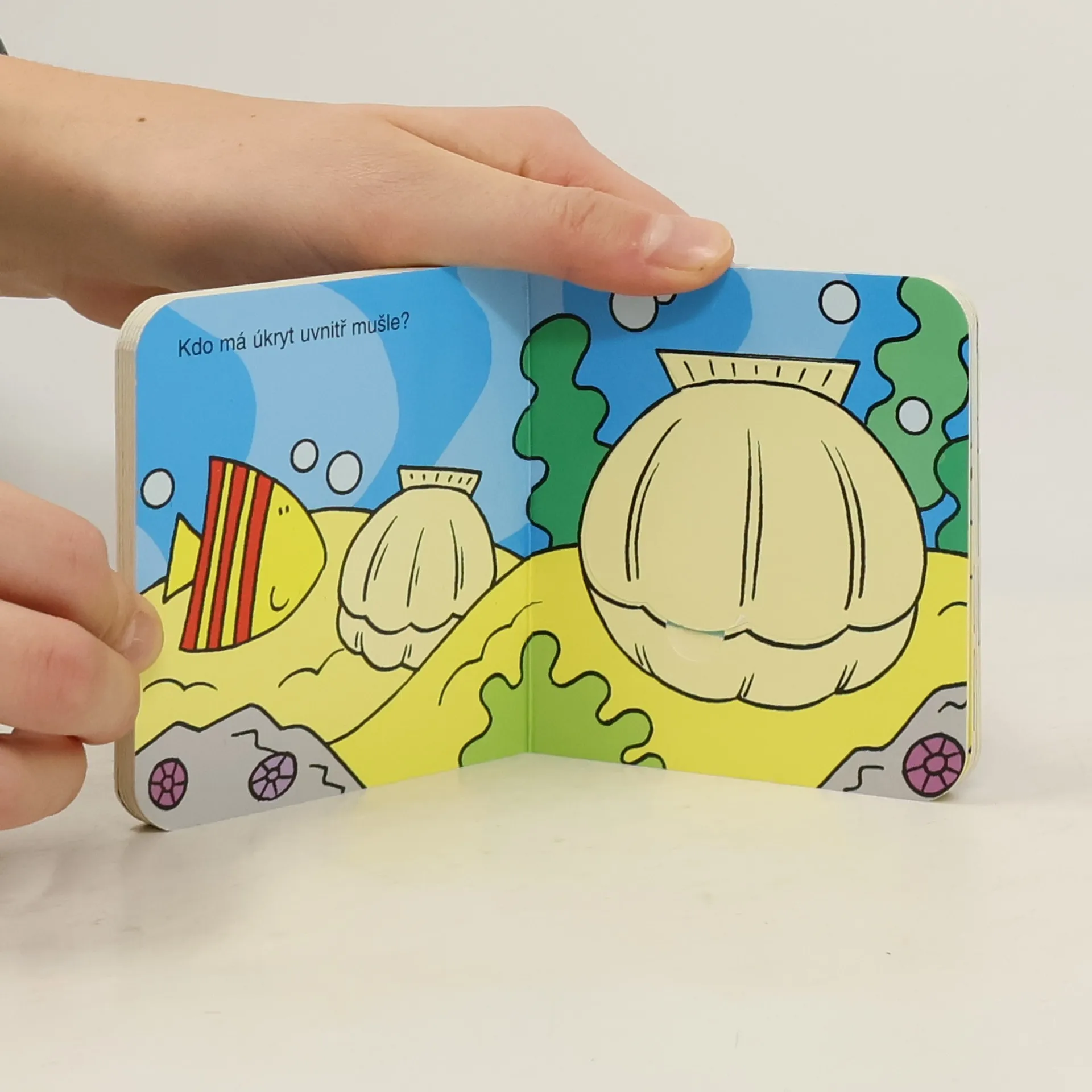 Podívej se pod okénko a najdi toho, kdo se tam schovává. Leporelo pro děti od 1 do 6 let, které je naučí zábavnou formou poznávat zvířátka, která mohou potkat v moři – rybky, mořské koníky či hvězdice a další.