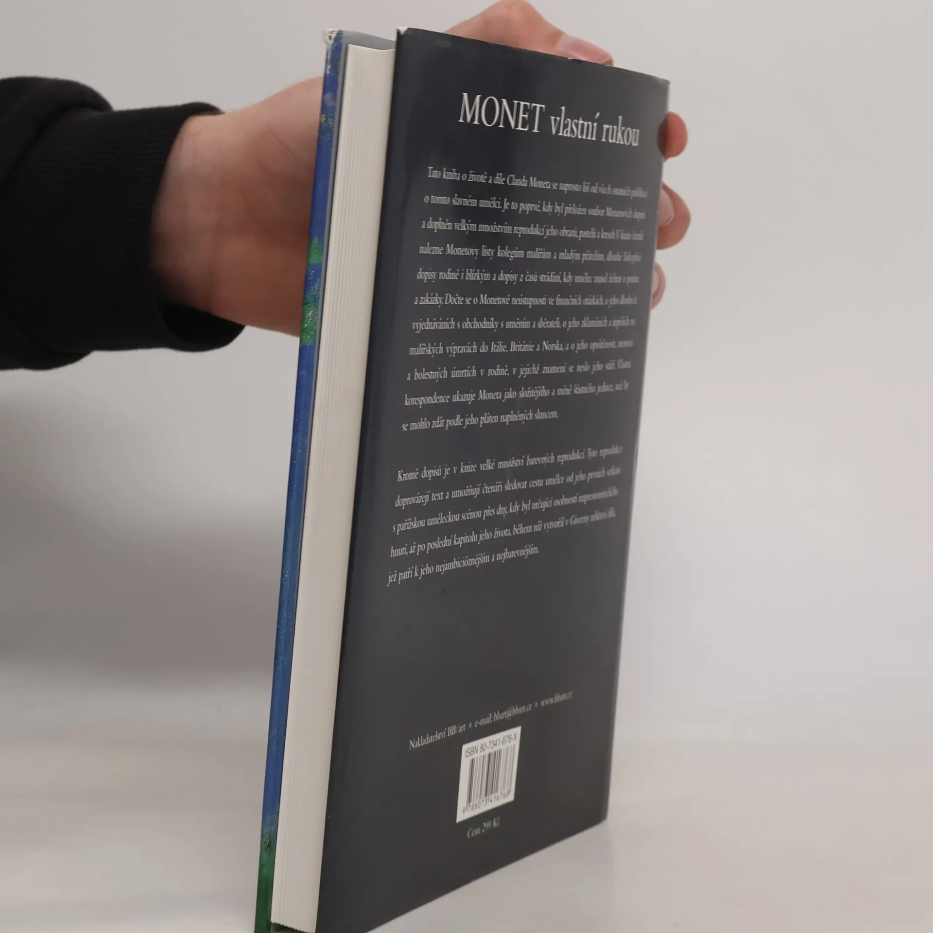V knize čtenář nalezne Monetovy listy kolegům malířům a mladým přátelům, dlouhé láskyplné dopisy rodině i blízkým a dopisy z časů strádání, kdy umělec musel žebrat o peníze a zakázky. Dočte se o Monetově neústupnosti ve finančních otázkách, o jeho dlouhých vyjednáváních s obchodníky s uměním a sběrateli, o jeho zklamáních a úspěších na malířských výpravách do Itálie, Británie a Norska, a o jeho opuštěnosti, nemoci a bolestných úmrtích v rodině, v jejichž znamení se neslo jeho stáří. Vlastní korespondence ukazuje Moneta jako složitějšího a méně šťastného jedince, než by se mohlo zdát podle jeho pláten naplněných sluncem. Kromě dopisů je v knize velké množství skvělých barevných reprodukcí jde o jeden z největších souborů, který byl kdy publikován pohromadě v jedné knize. Tyto reprodukce doprovázejí text a umožňují čtenáři sledovat cestu mladého umělce od jeho prvních setkáních s pařížskou uměleckou scénou přes dny, kdy byl určující osobností impresionistického hnutí, až po poslední kapitolu jeho života, během níž vytvořil v Giverny některá díla, jež patří k jeho nejambicióznějším a nejbarevnějším.
