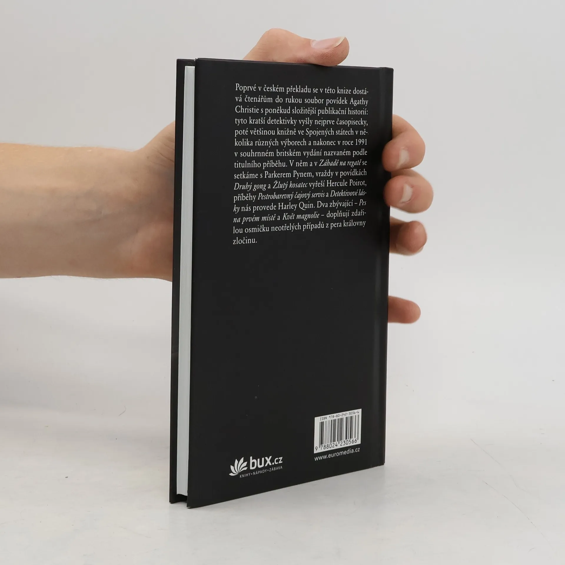 Soubor vydaný ve velké Británii v roce 1991 zahrnuje povídky, které do té doby vyšly knižně pouze ve Spojených státech. V titulním příběhu a v Záhadě na regatě se setkáme s Parkerem Pynem, v povídkách Druhý gong a Žlutý kosatec s Herculem Poirotem, v příbězích nazvaných Pestrobarevný čajový servis a Detektivové lásky pak s Harleym Quinem. Dva zbývající – Pes na prvém místě a Květ magnolie – doplňují zdařilou osmičku neotřelých případů z pera královny detektivek.