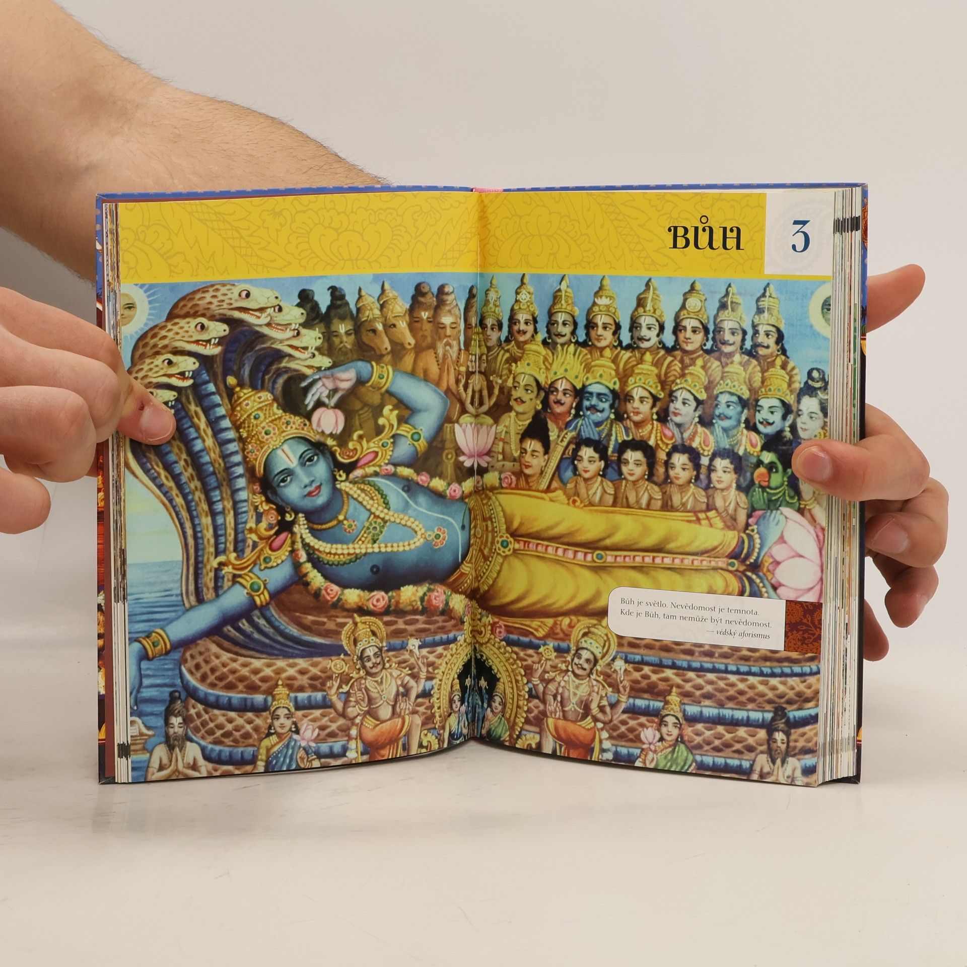 V několika snadno čitelných a srozumitelných kapitolkách se dozvíte o tématech jako jsou Védy - starobylé texty Indie, Krišna a Jeho inkarnace, Rádhá a Gópie, Ajurvéda, védská astrologie, význam slabiky "ÓM", síla manter, 33 miliónů polobohů, karma a reinkarnace, umění: poezie, drama, tanec, hudba, tajemství času a prostoru, svaté chrámy a posvátná místa, mystická jóga a meditace, málo známá totožnost Pána Buddhy a další.