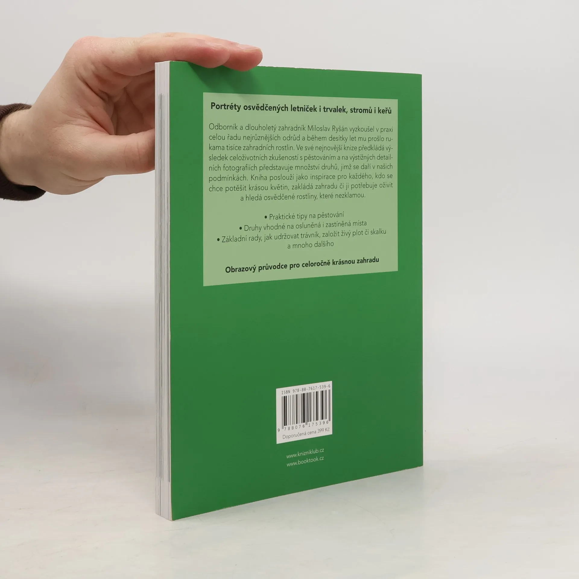 Encyklopedie nejkrásnějších, spolehlivě kvetoucích druhů, které na své zahradě vyzkoušel dlouholetý zahradník a odborník na danou problematiku Miloslav Ryšán. Ve své nejnovější knize předkládá výsledek svých celoživotních zkušeností s pěstováním zahradních rostlin a na výstižných detailních fotografiích představuje přes pět set osvědčených druhů. Kniha poslouží jako inspirace pro každého, kdo zakládá zahradu či ji potřebuje doplnit o něco nového, anebo se chce jen potěšit krásou květin.