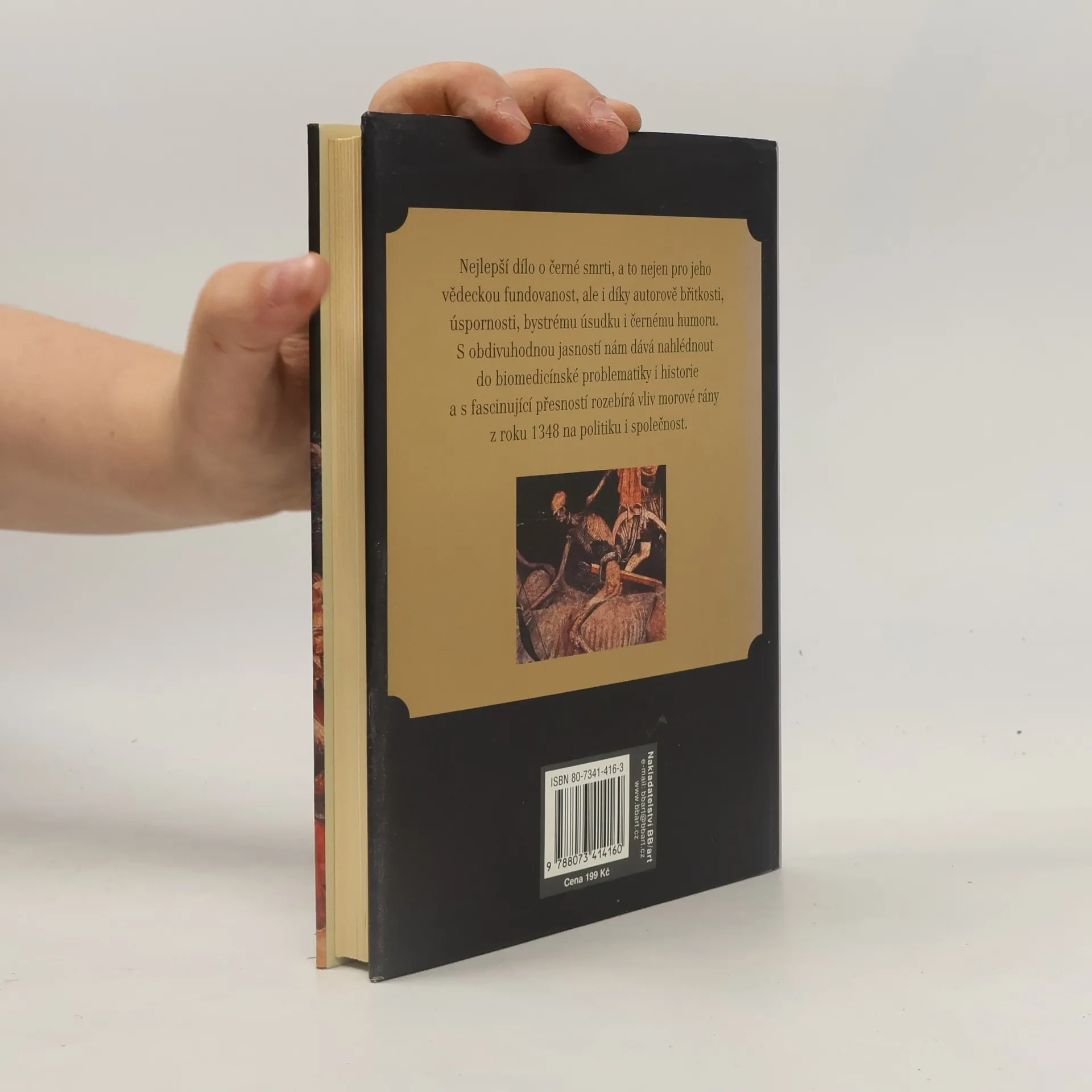 Skvělé dílo o černé smrti vyniká nejen vědeckou fundovaností, ale také autorovou břitkostí, úsporností a černým humorem. S jasností nám přibližuje biomedicínské otázky a historii, přičemž fascinujícím způsobem analyzuje vliv morové rány z roku 1348 na politiku a společnost. Studie nabízí detailní pohled na řádění černé smrti v Anglii a na evropské pevnině, seznamuje nás s příběhy mužů a žen čtrnáctého století – rolníků, kněží, kupců a králů. Autor představuje rozmanité postavy, jako je anglická princezna Joan, která cestuje do Španělska, a Thomas z Birminghamu, opatem pečujícím o opatství v těžkých časech. Osud bohatého pozemkového vlastníka Johna le Strange, jehož jméno vymazala černá smrt, je také jedním z příběhů, které nás osloví. Navzdory katastrofálním následkům, které si vyžádaly více než čtyřicet procent evropské populace, měla pandemie i blahodárné důsledky. Zhroucení starých pořádků vedlo k prosazení nového exaktního myšlení a umění zažilo bouřlivý rozvoj. Černá smrt přinesla i ekonomické změny, kdy přeživší rolníci rychle bohatli a položili základy svobodného selského stavu. Tyto příběhy se objevují z temnoty a autorův obraz světa černé smrti je provokativní a poutavý. Vytvořil fascinující a čtivé dílo, které osloví široké publikum.