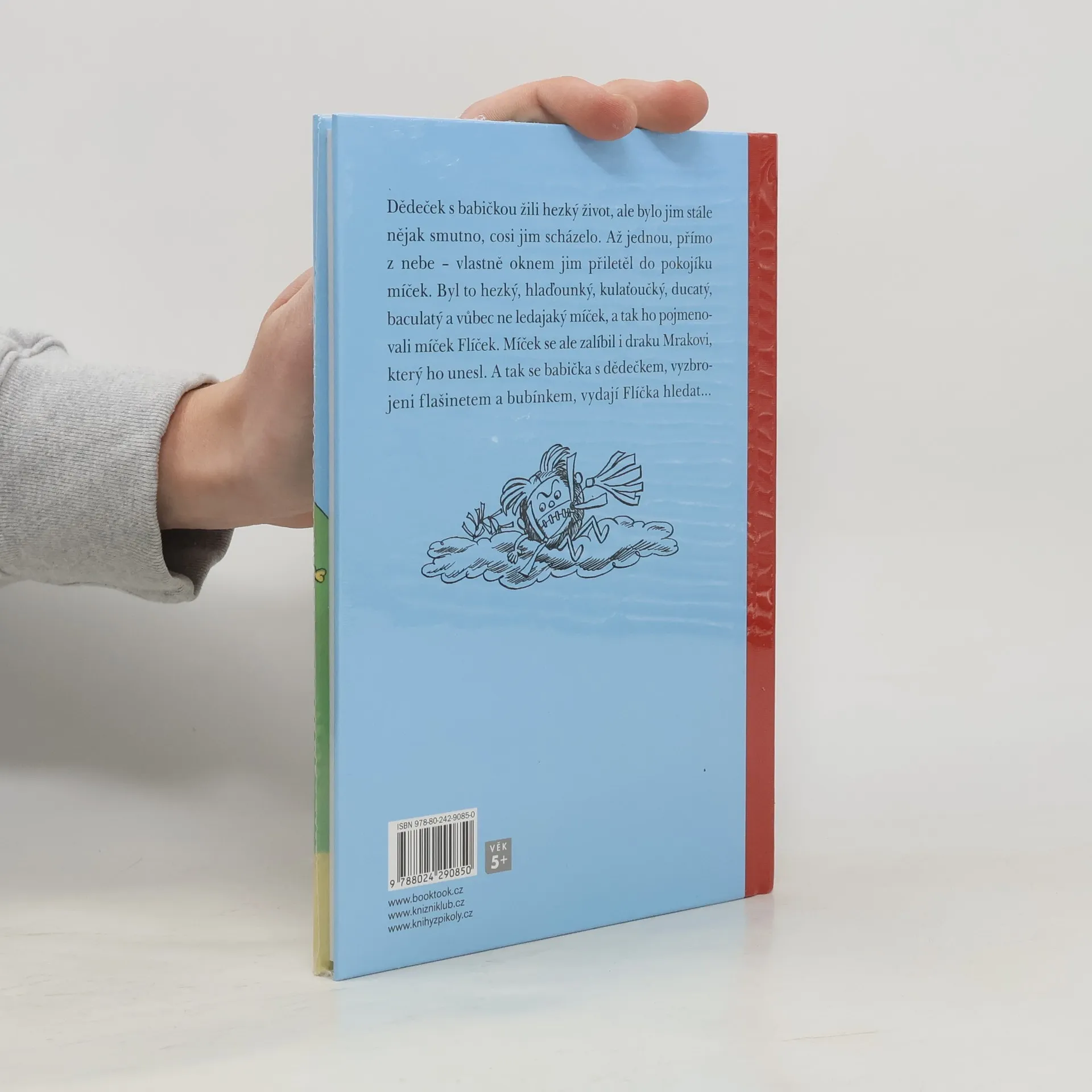 Je vám smutno? Pořiďte si míček! Ten z našeho příběhu ovšem není ledajaký. To takhle jeden dědeček s babičkou žili hezký život, ale pořád jim něco scházelo. Až jim jednou, přímo z nebe – vlastně oknem – přiletěl do pokoje míček. Byl hezký, hlaďounký, kulaťoučký, baculatý a vůbec povedený, a tak si ho pojmenovali. Dali mu jméno Flíček. Jenomže míček Flíček se zalíbil taky draku Mrakovi, a ten ho unesl. Dědeček s babičkou ho dlouho, předlouho hledali a poprosili o pomoc i strašáka Pašáka, psíčka Pantoflíčka a ptáčka Jarabáčka. Podařilo se jim ho najít? Přečtěte si to v knize s původními ilustracemi Ondřeje Sekory.