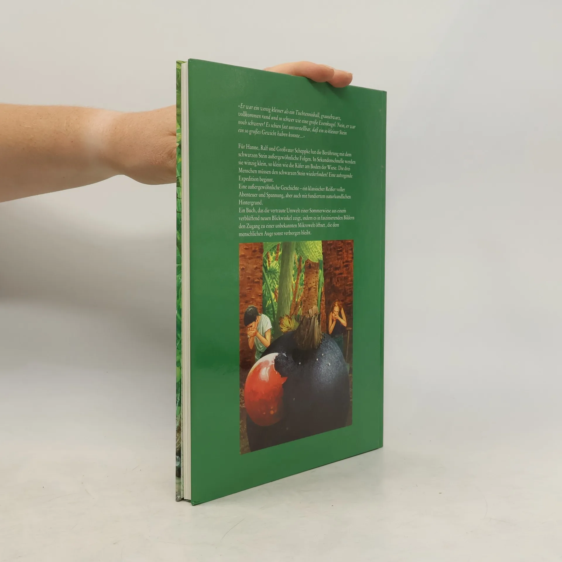 Zusammengeschrumpft auf die Grösse eines Käfers kämpfen sich Hanne, Ralf und Grossvater durch den Dschungel einer Sommerwiese. Bilder: R. Mühlbauer. (ab 10).