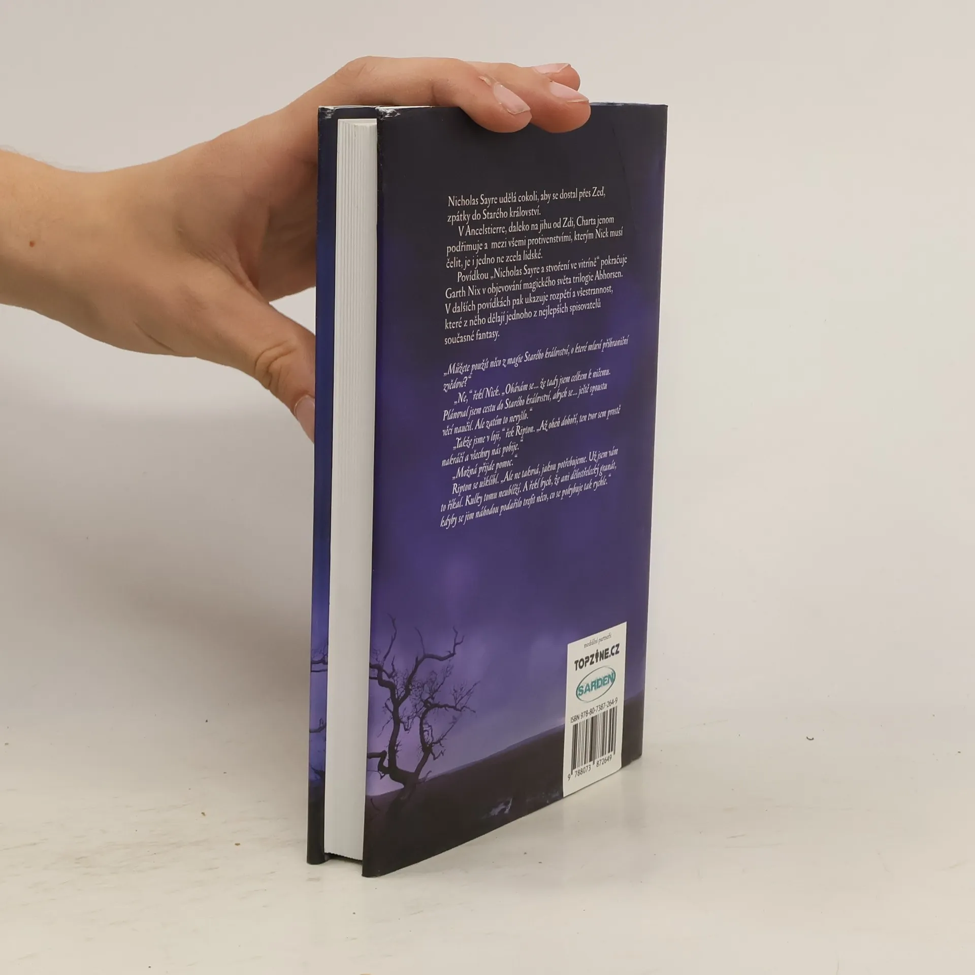 Nicholas Sayre udělá cokoli, aby se dostal přes Zeď, zpátky do Starého království. V Ancelstierre, daleko na jihu od Zdi, Charta jenom podřimuje a mezi všemi protivenstvími, kterým Nick musí čelit, je i jedno ne zcela lidské. Povídkou „Nicholas Sayre a stvoření ve vitríně“ pokračuje Garth Nix v objevování magického světa trilogie Abhorsen. V dalších povídkách pak ukazuje rozpětí a všestrannost, které z něho dělají jednoho z nejlepších spisovatelů současné fantasy.
