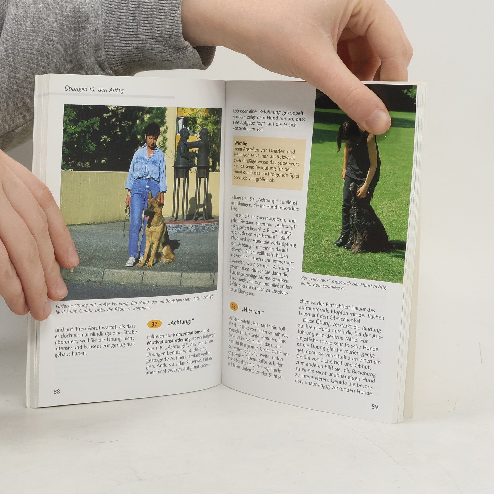 Grundausbildung: Sitz-Fuss-Steh-Platz, wie lernt der Hund spielerisch die wichtigsten Kommandos? Übungen für den Alltag: Stellen Sie sich vor, Ihr Hund holt das Telefon, wenn es klingelt! Jux-Befehle: Seil springen, Fussball spielen, Leckerchen auf der Nase balancieren - mit geduldigem Üben lernen Hunde fast alles! Freizeit und Sport: Hunde haben Spass an der Bewegung und am Spiel - ob mit dem Frisbee, am Fahrrad, beim Agility oder auf dem Hundesportplatz. Spielen und Toben: Vertiefen Sie die Beziehung zu Ihrem Hund durch Zieh-, Such-, Wasser- und Apportspiele und haben Sie gemeinsam jede Menge Spass dabei!