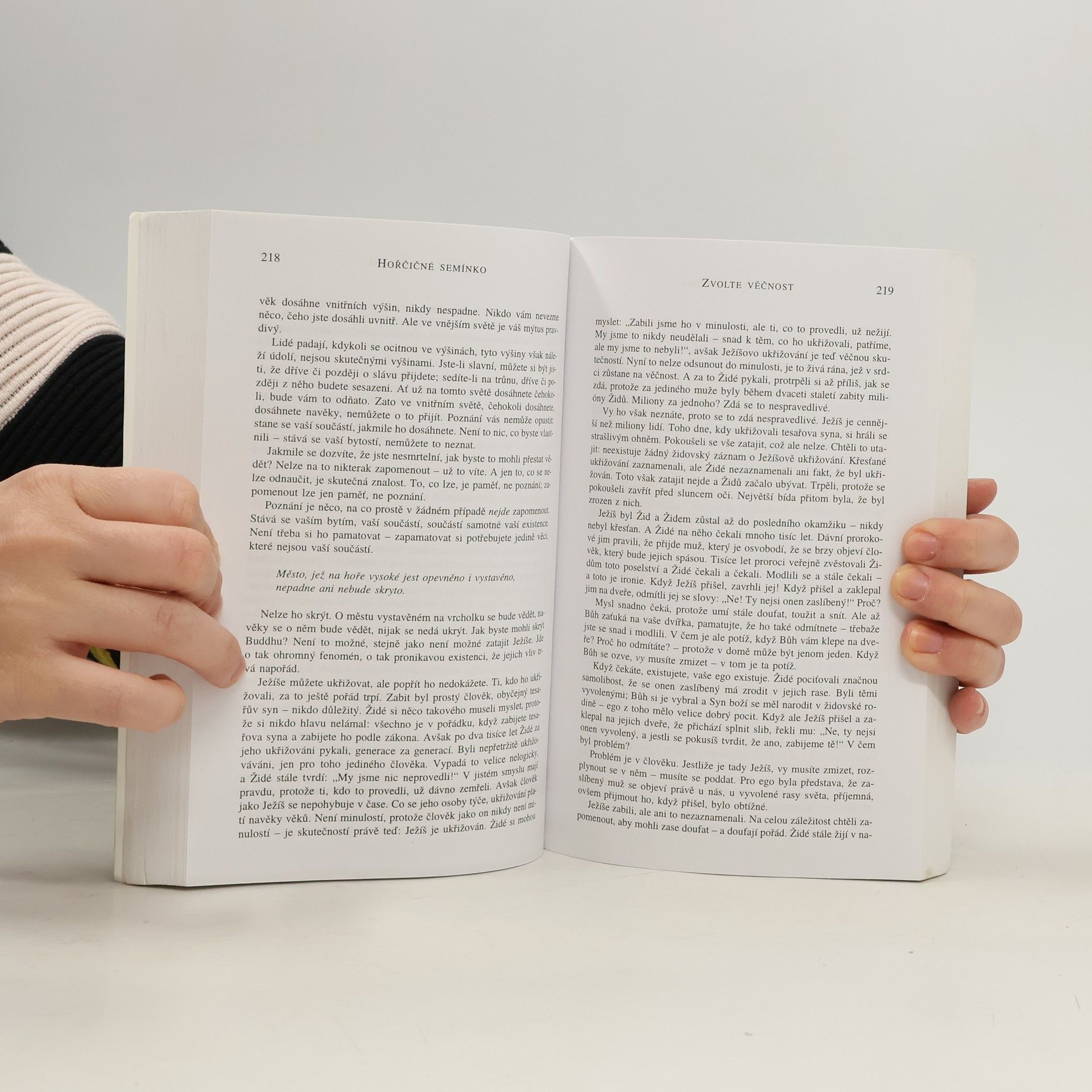 Promluvy o evangeliu podle svatého Tomáše "Království boží je jako hořčičné semínko", říká Ježíš. Semínko musí zemřít - a tak se stane stromem, Bůh se rozpustil do vesmíru, je všude, jako je semínko nyní v celém stromu. Kniha obsahuje 21 promluv nad citáty z Tomášova evangelia.