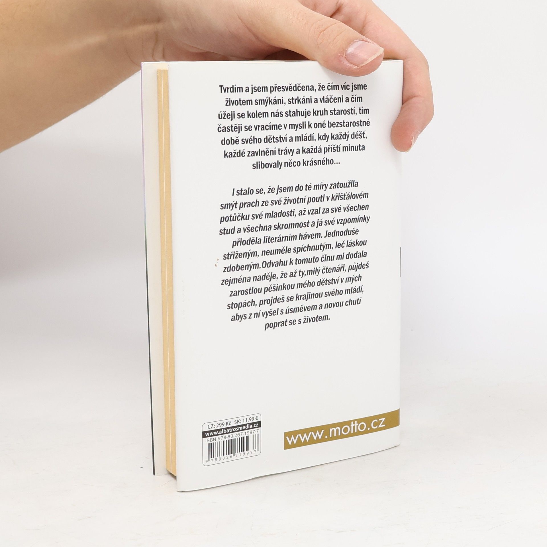 Úsměvné vzpomínky na dětství a mládí známé české herečky. Dětské radosti a bolesti, rodinné a školní prostředí, kamarádi a první lásky jsou zde zachyceny s vtipem, nadhledem a ironií, a nepostrádají ani hlubší pohled na společenské a politické problémy doby.