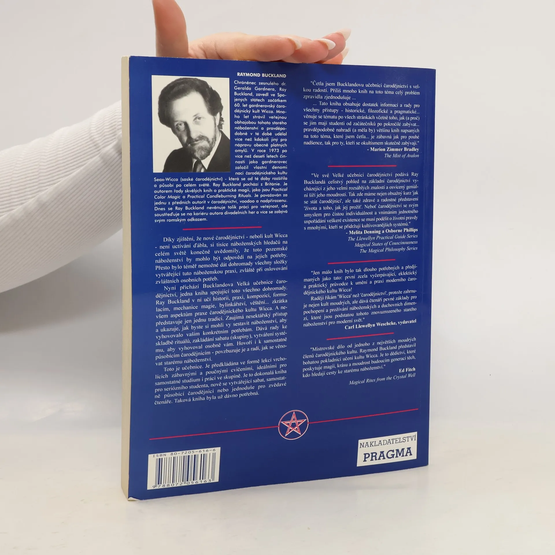 Díky zjištění, že nové čarodějnictví - neboli kult Wicca - není uctívání ďábla, si tisíce náboženských hledačů na celém světě konečně uvědomily, že toto pozemské náboženství by mohlo být odpovědí na jejich potřeby. Přesto bylo téměř nemožné dát dohromady všechny složky vytvářející tuto náboženskou praxi, zvláště při oslovování zvláštních osobních potřeb. Nyní přichází Bucklandova Velká učebnice čarodějnictví, jedna kniha spojující toto všechno dohromady. Ray Buckland v ní učí historii, praxi, kompozici, formulacím, mechanice magii, bylinkářství, věštění... zkrátka všem aspektům praxe čarodějnického kultu Wicca. A nepředstavuje jen jednu tradici. Zaujímá nesektářský přístup a ukazuje, jak byste si mohli vy sestavit náboženství, aby vyhovovalo vašim konkrétním potřebám. Dává rady ke skladbě rituálů, zakládání sabatu (skupiny), vytváření systému, aby vyhovoval osobně vám. Hovoří i k samostatně působícím čarodějnicím - povzbuzuje je a radí, jak se věnovat starému náboženství. Toto je učebnice. Je předkládána ve formě lekcí vrcholících zábavnými a poučnými cvičeními, ideálními pro samostatné studium i práci ve skupině. Je to dokonalá kniha pro seriózního studenta, nově se vytvářející sabat, samostatně působící čarodějnici nebo jednoduše pro zvědavé čtenáře.