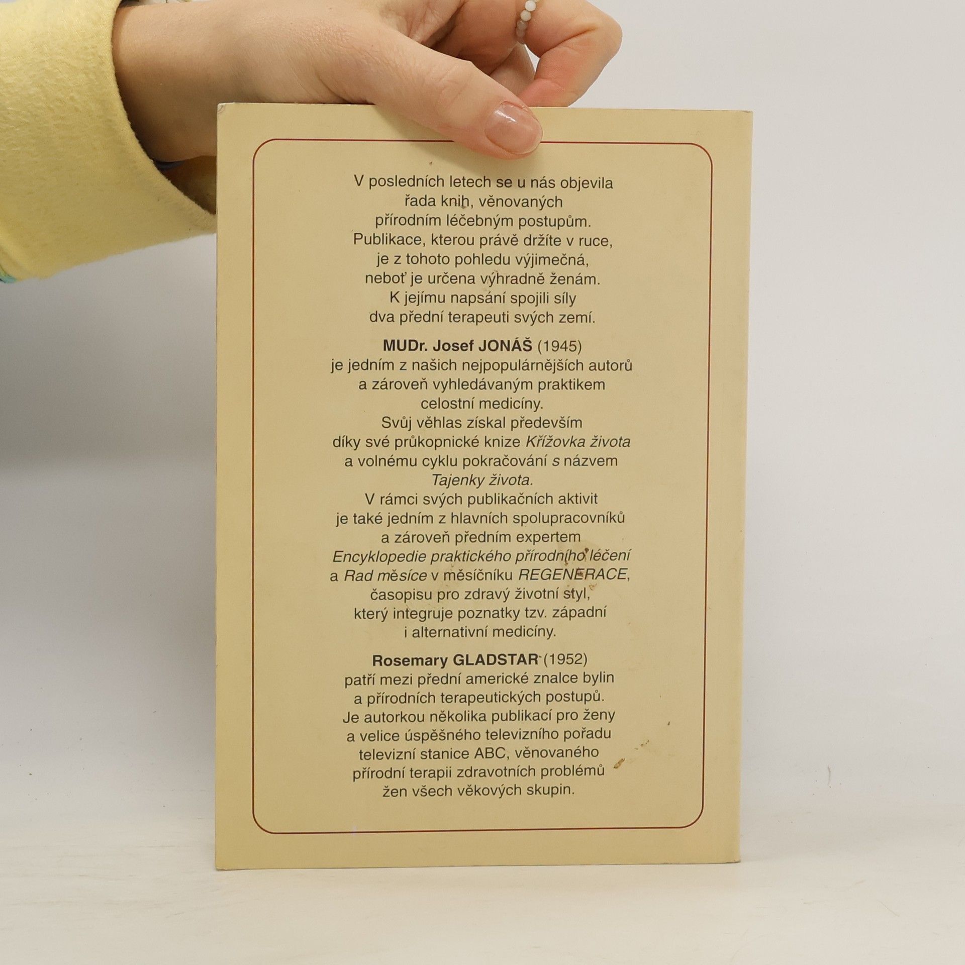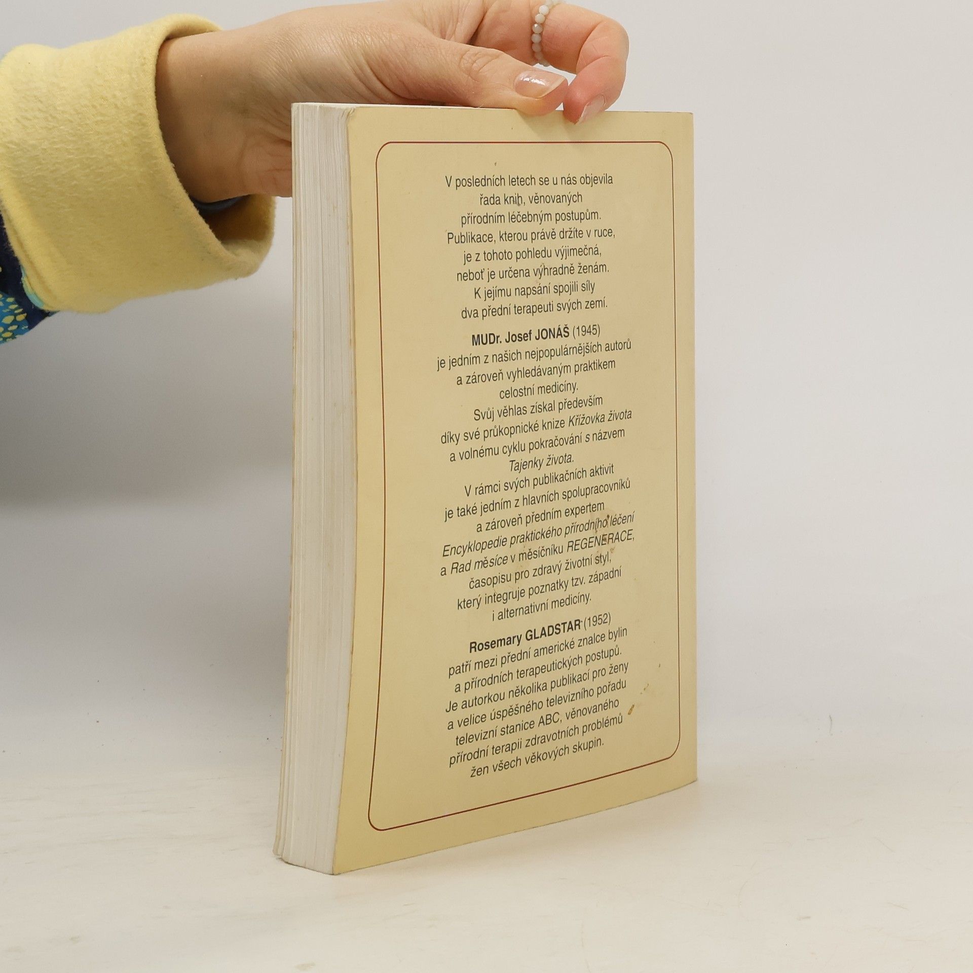 Podtitul: Praktické rady, návody a recepty pro prevenci a udržení zdraví určené ženám všech věkových skupin V posledních letech se u nás objevila řada knih, věnovaných přírodním léčebným postupům. Tato publikace je však z tohoto pohledu výjmečná především tím, že je určena pouze ženám. K jejímu napsání soujili síly dva přední terapeuti svých zemí. ... celý text